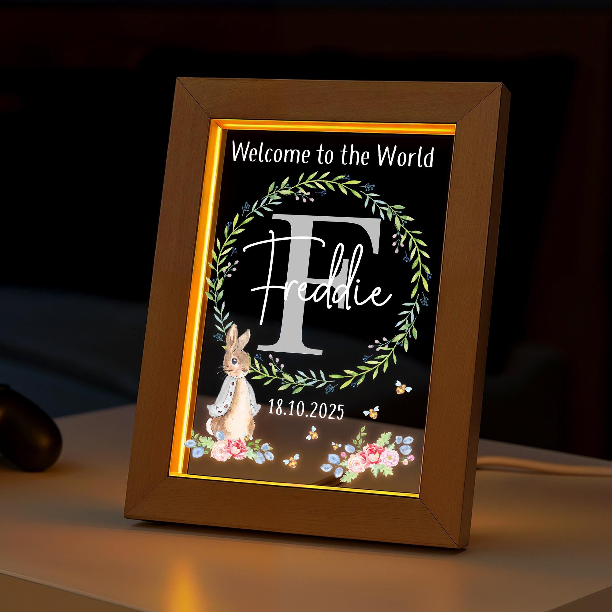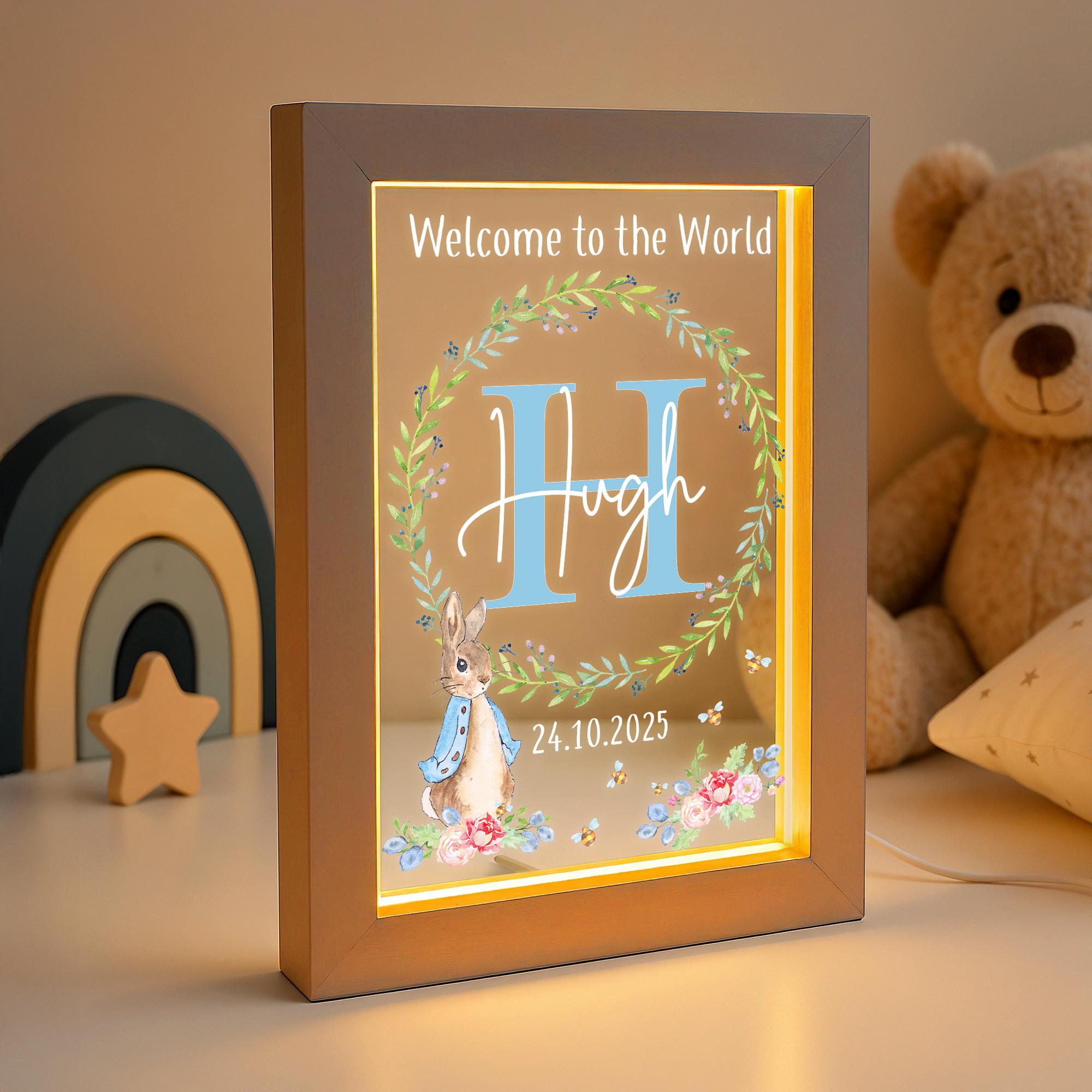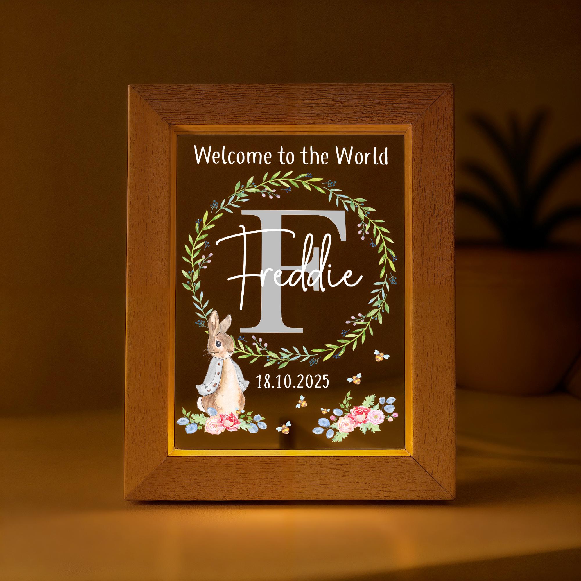 Personalised Baby Rabbit LED New Baby Night Light Frame