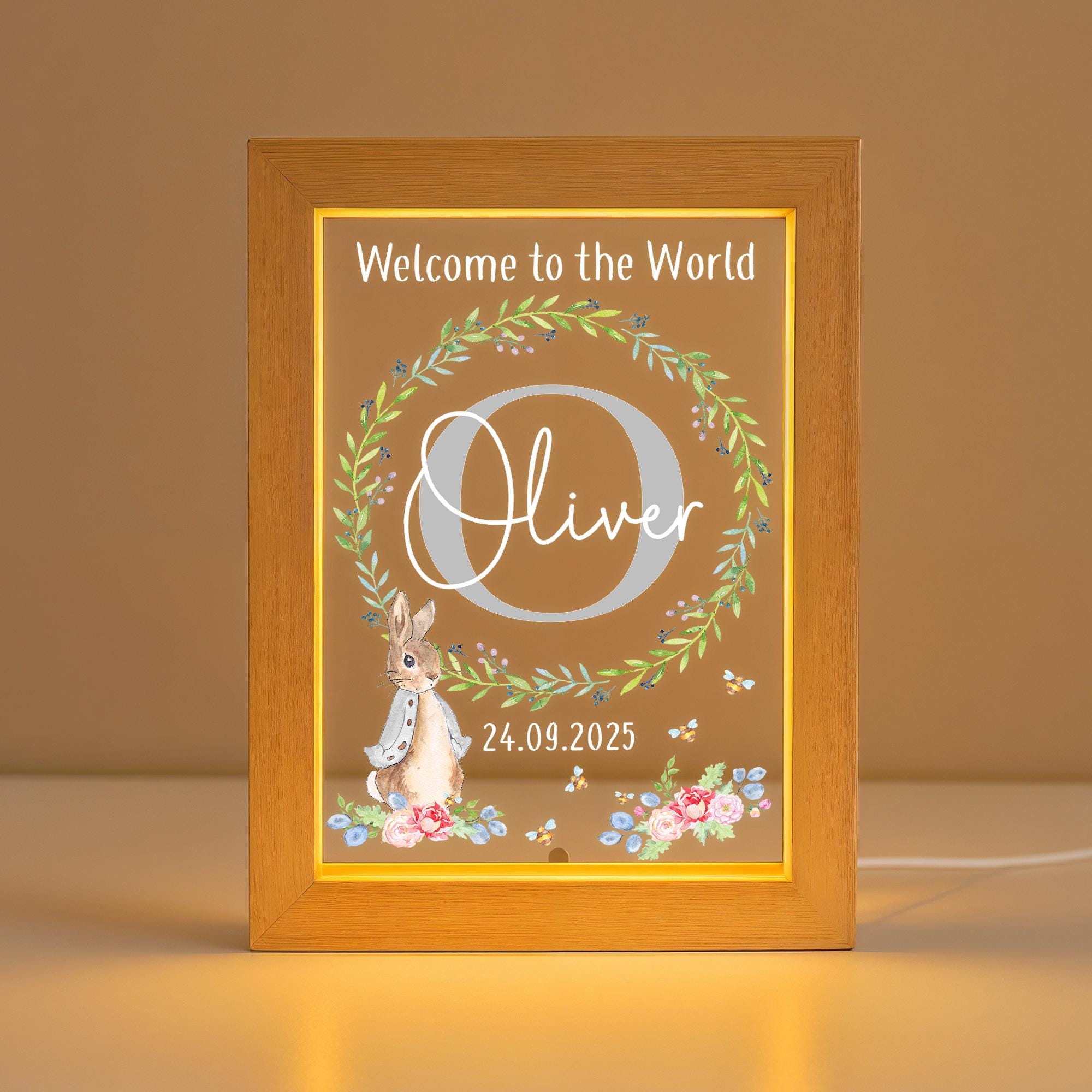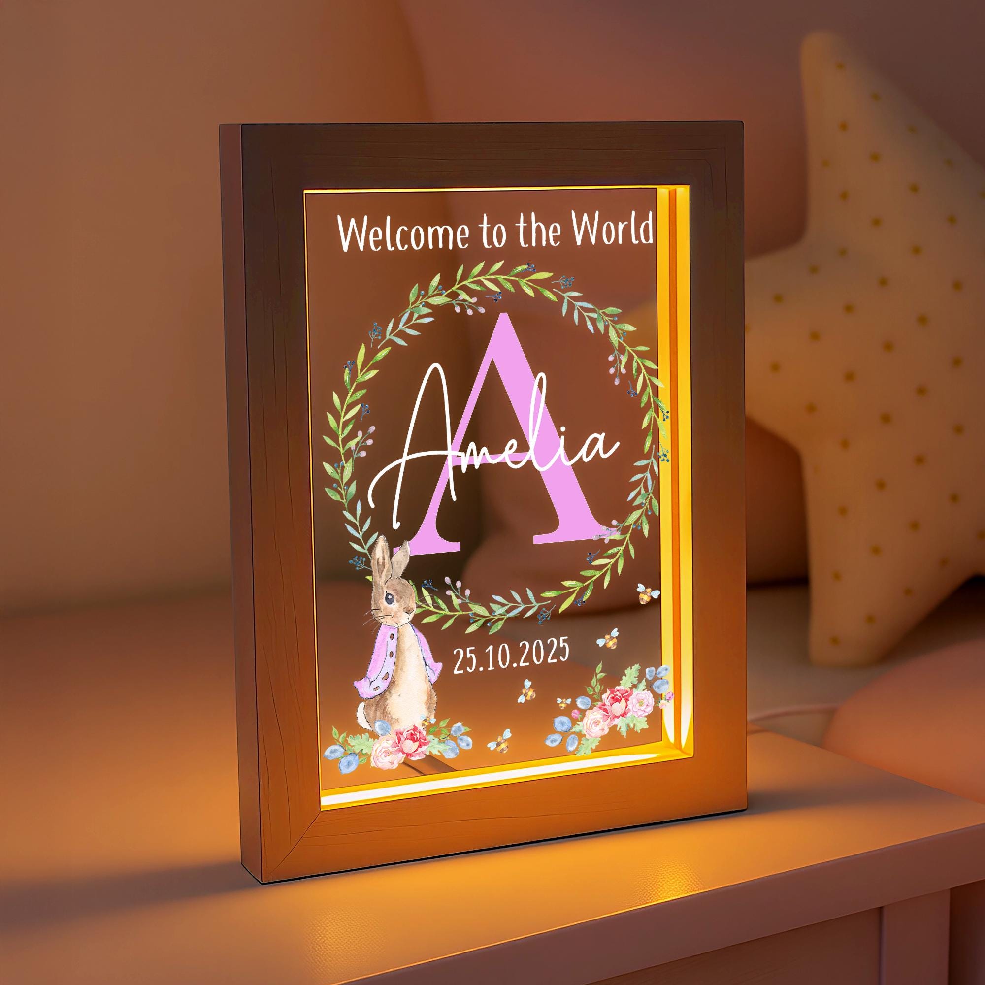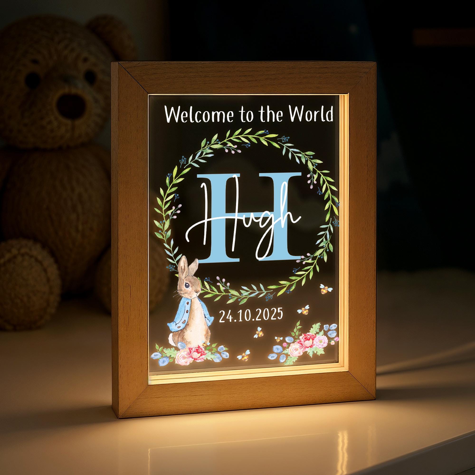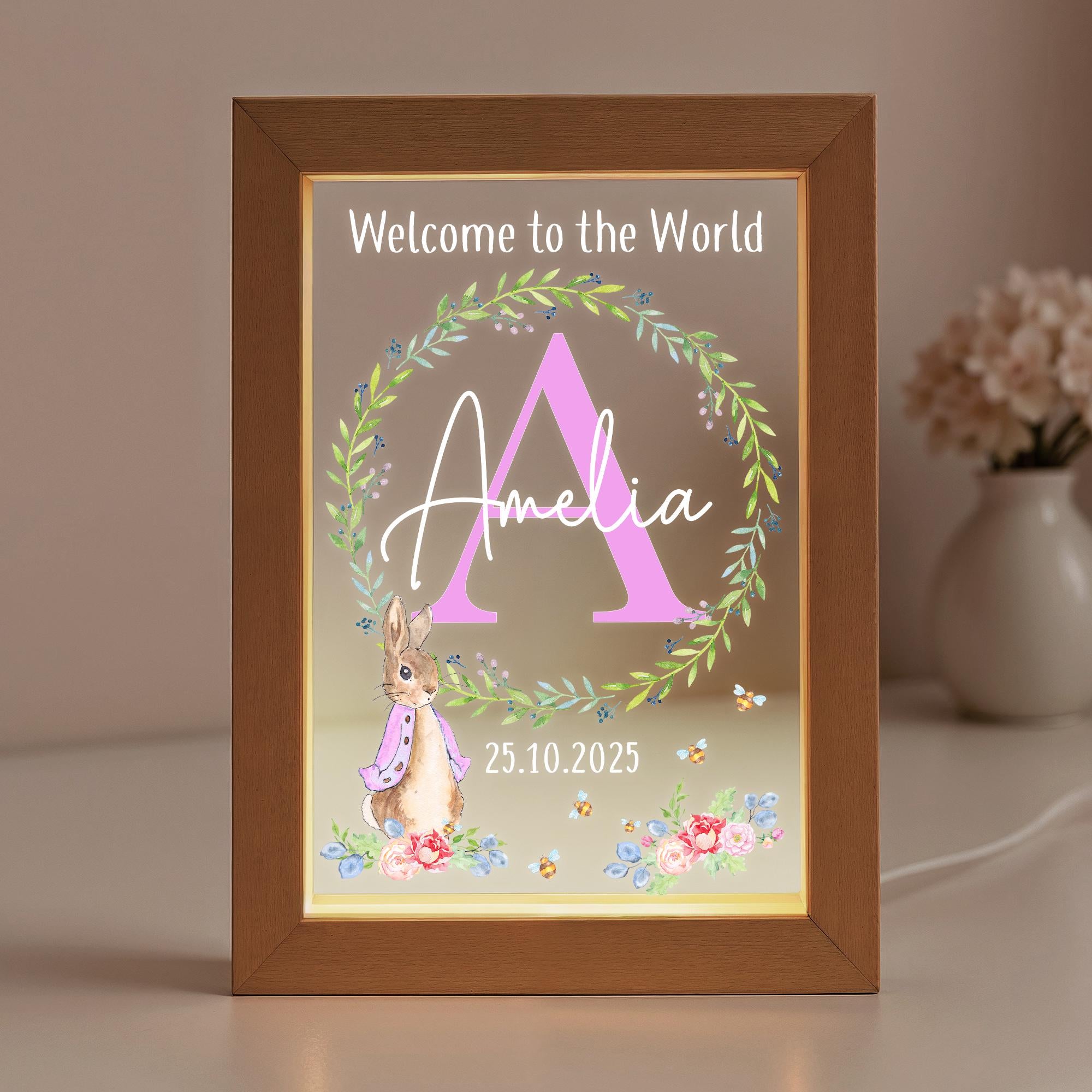 Personalised Baby Rabbit LED New Baby Night Light Frame