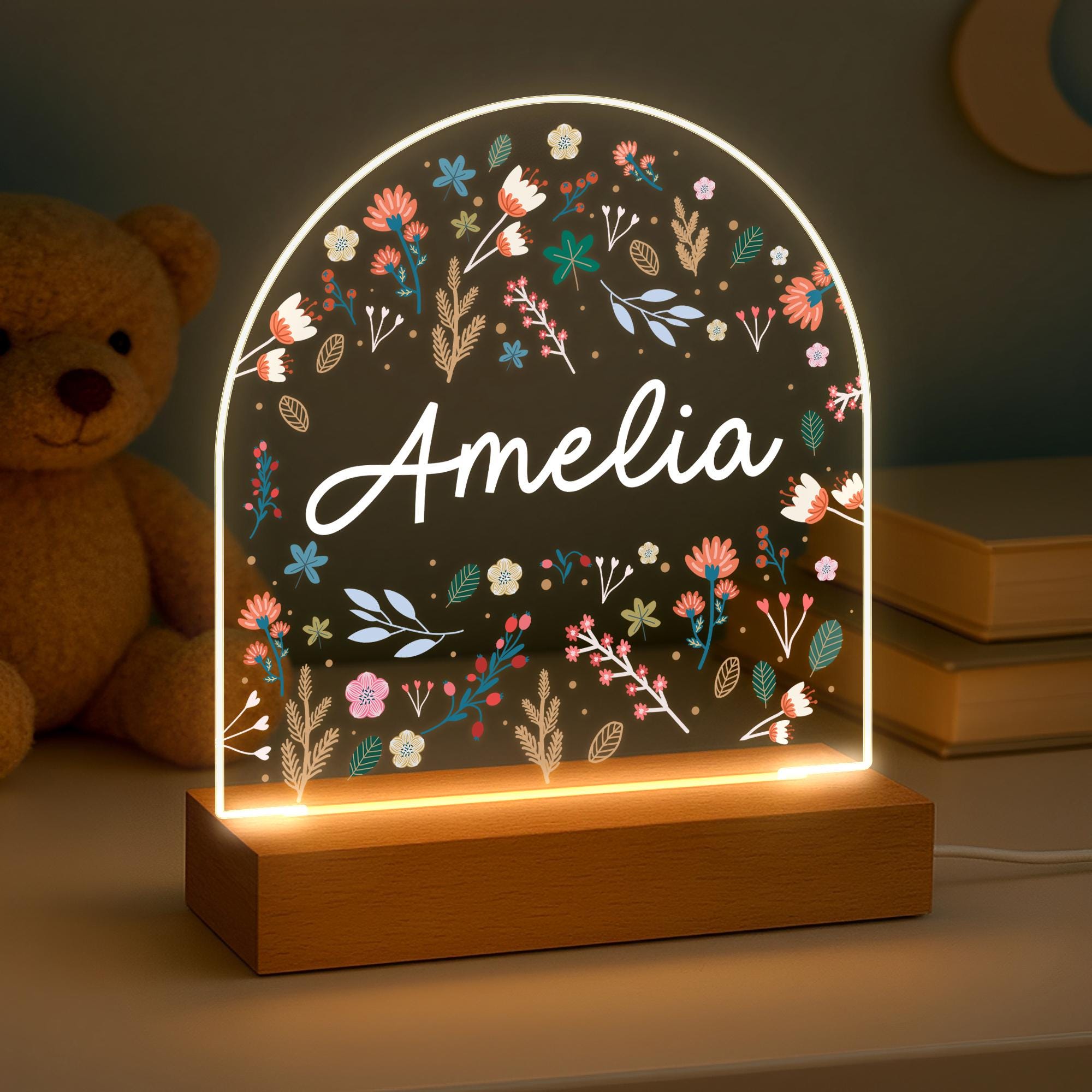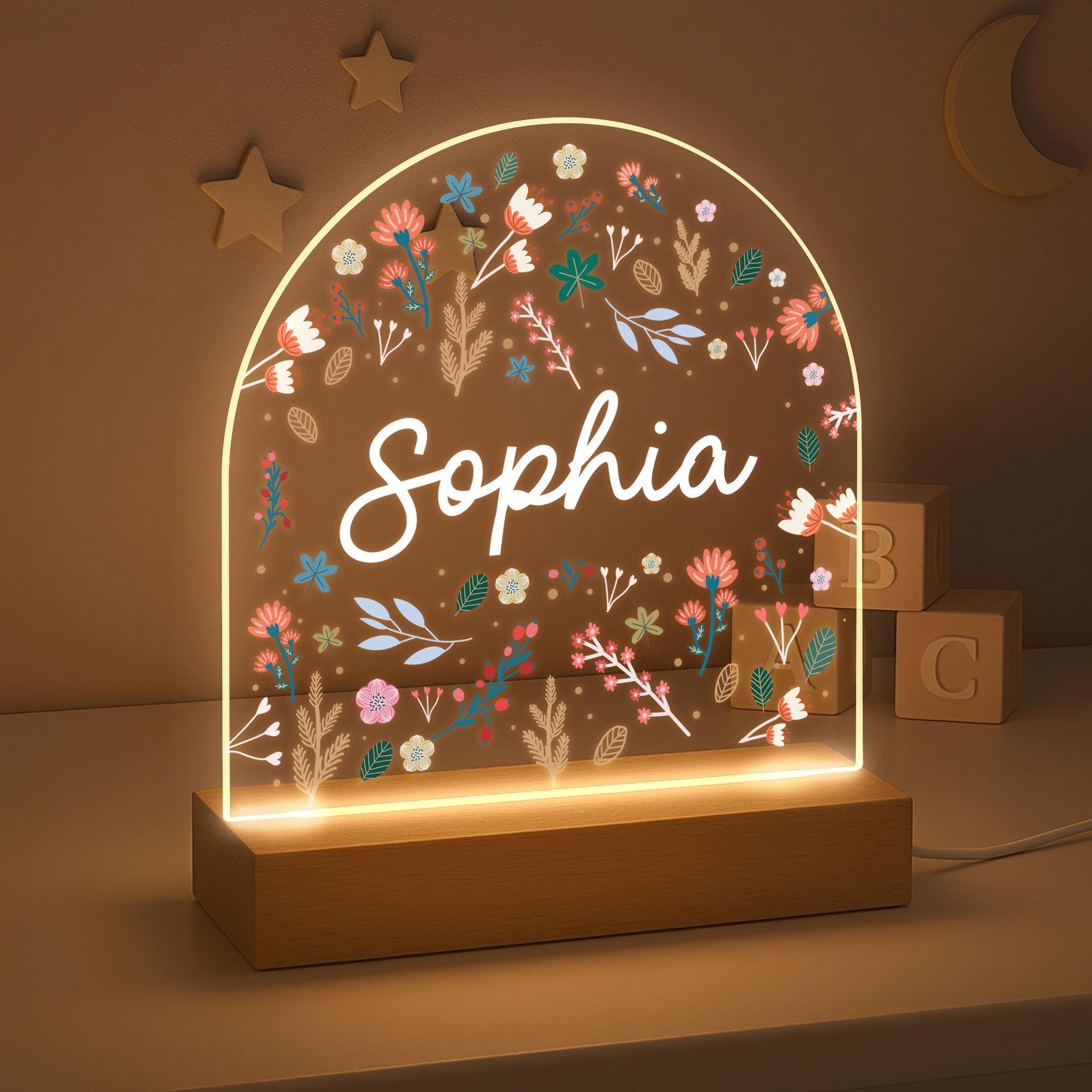 Personalised LED Flower Baby Kids Night Light