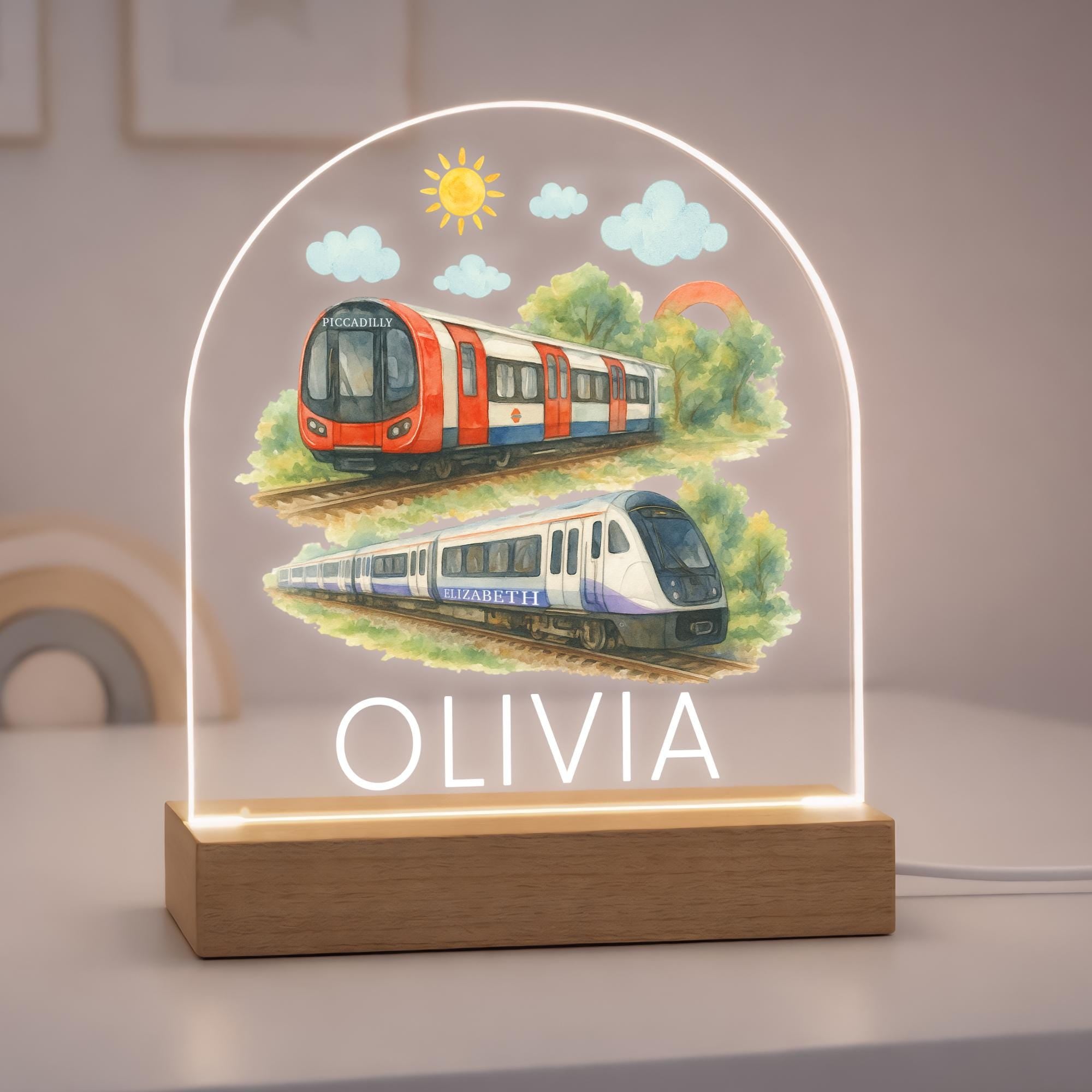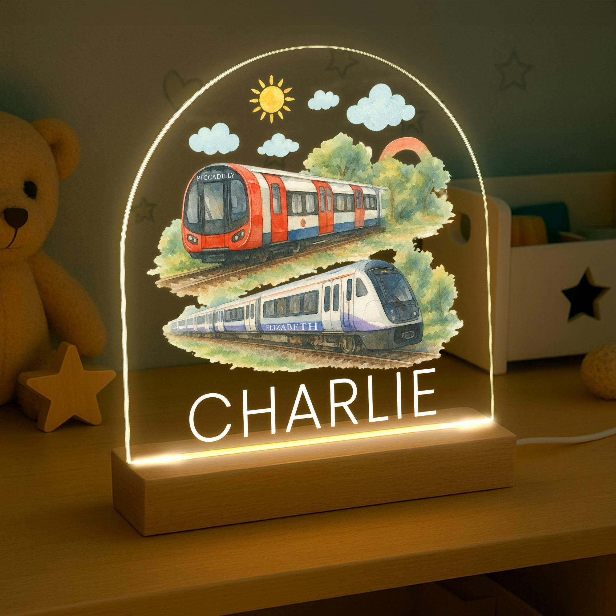 Personalised LED London Trains Night Light Lamp Kids Bedroom