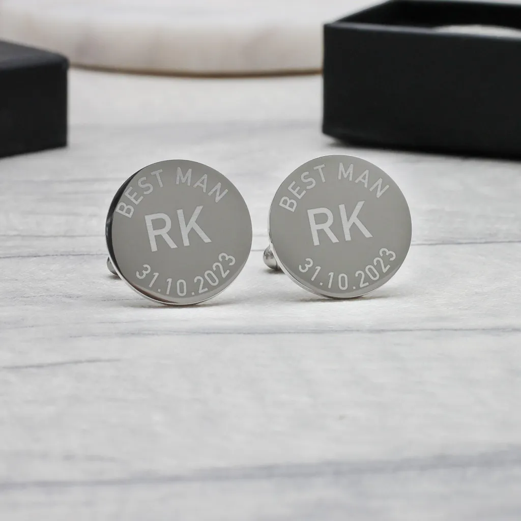 Personalised Men's Engraved Wedding Party Role Any Date Initial Cufflinks