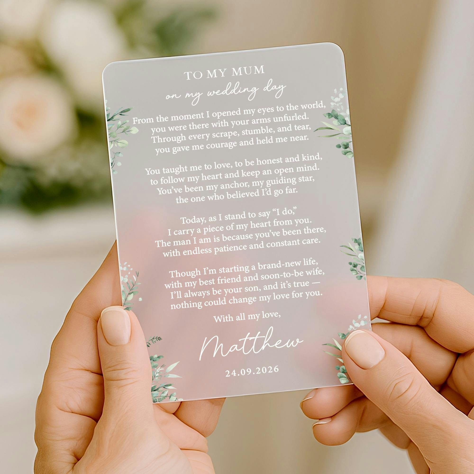 Personalised Mother of the Groom Thank You Wedding Day Postcard Keepsake Gift