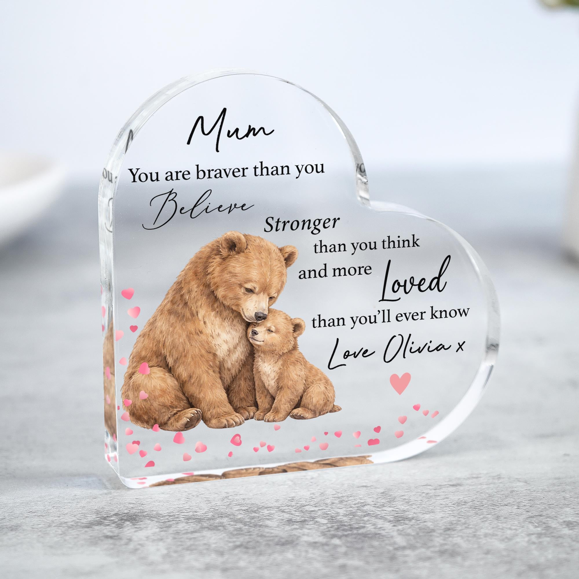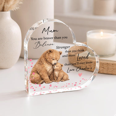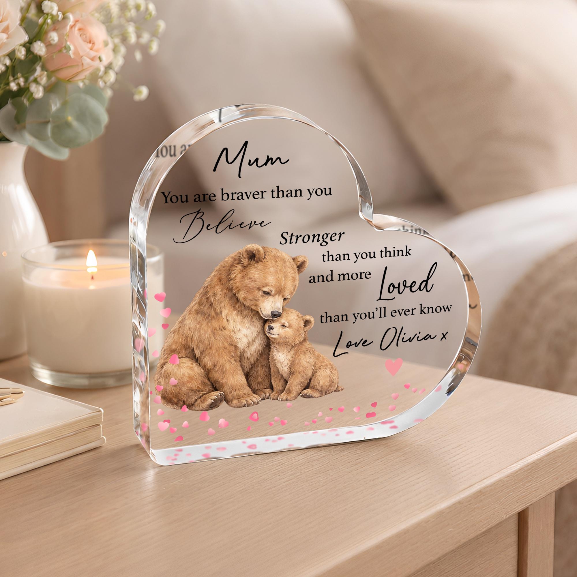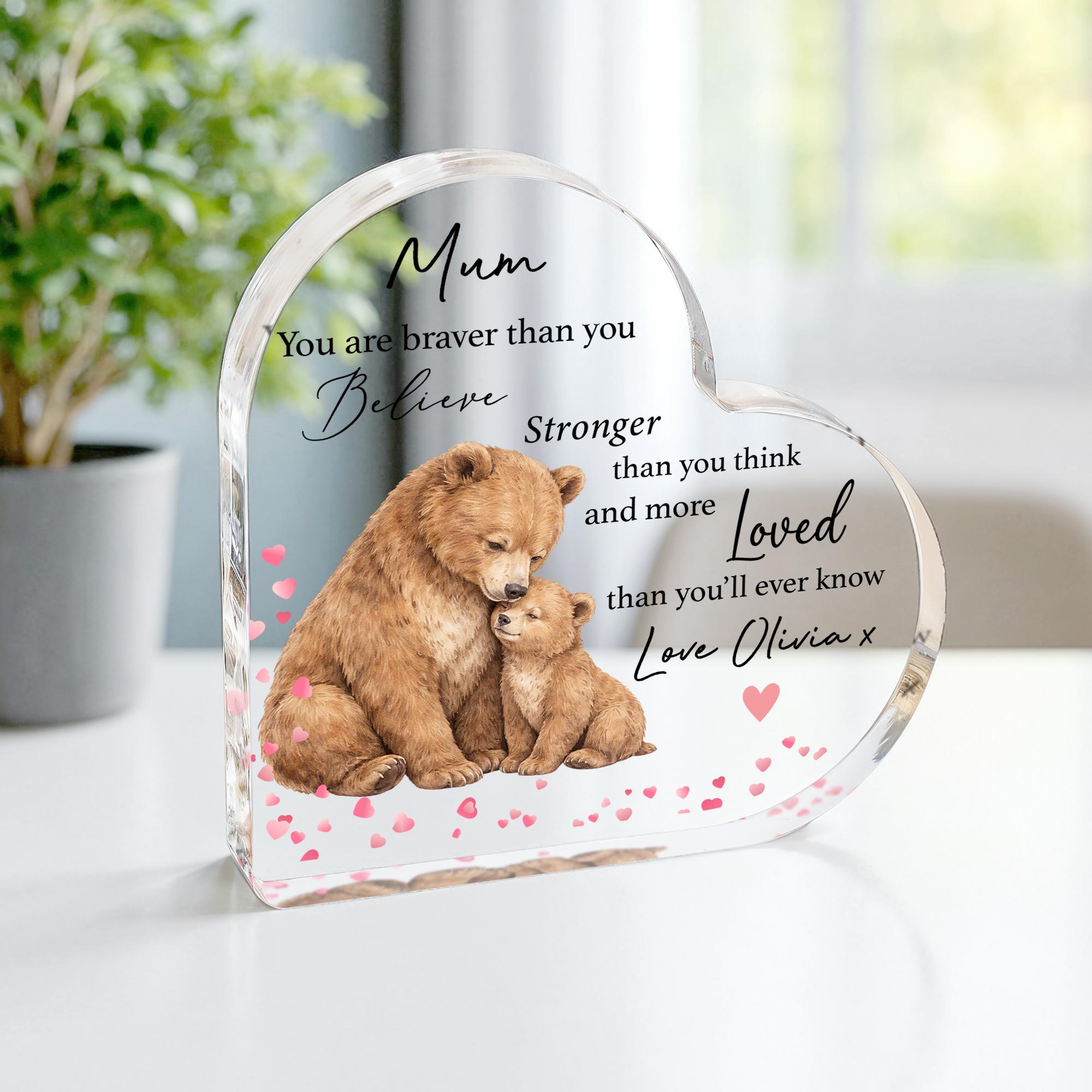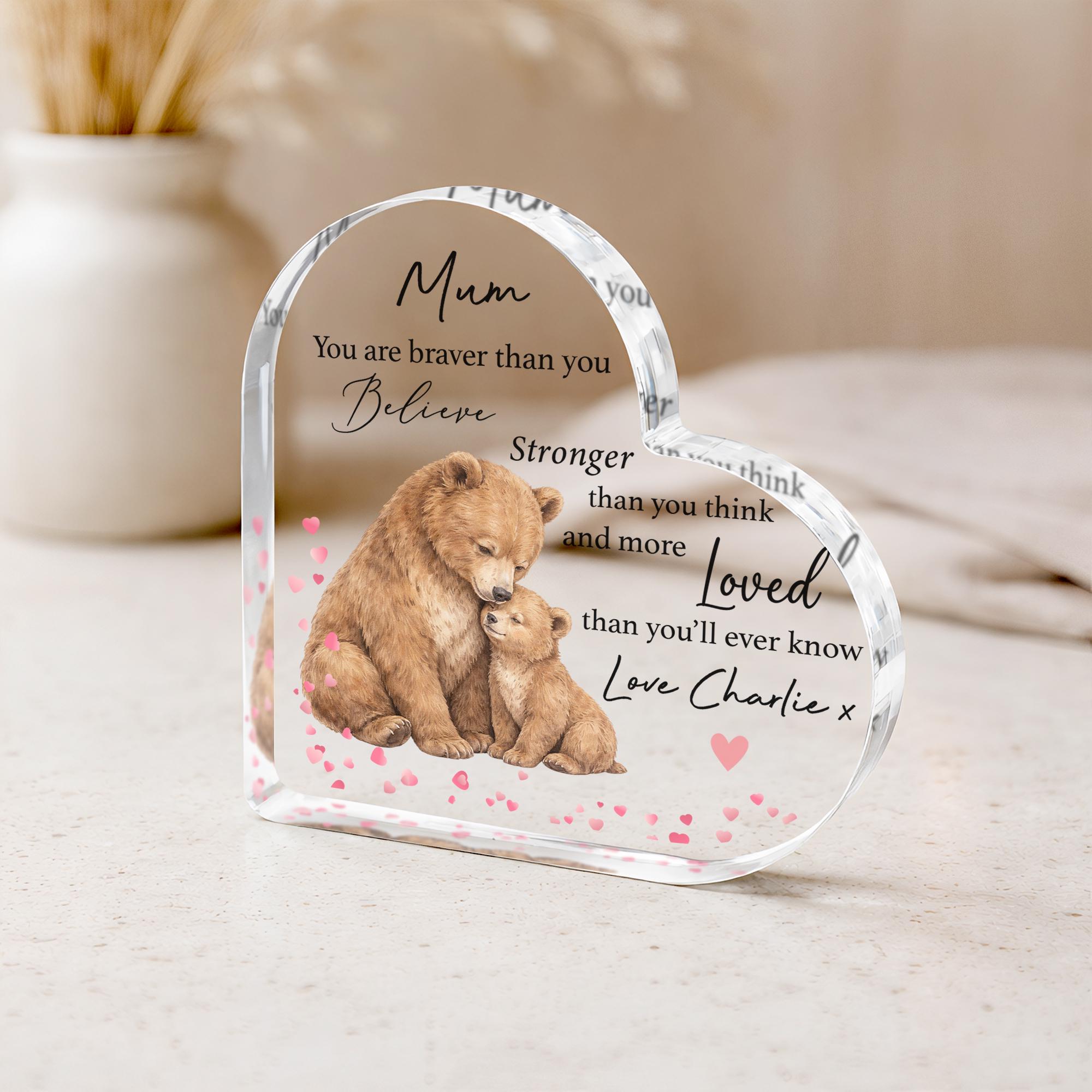 Personalised Mother's Day Mummy Bear & Baby Keepsake Heart Plaque Poem
