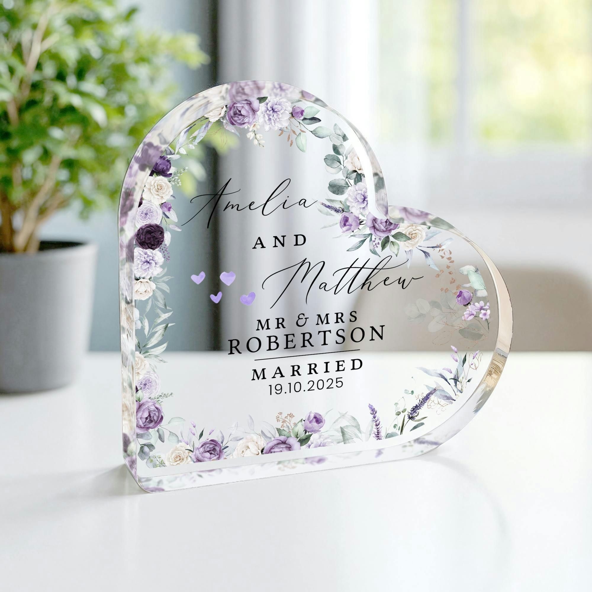 Personalised Mr & Mrs Married Wedding Heart Ornament Gift Plaque