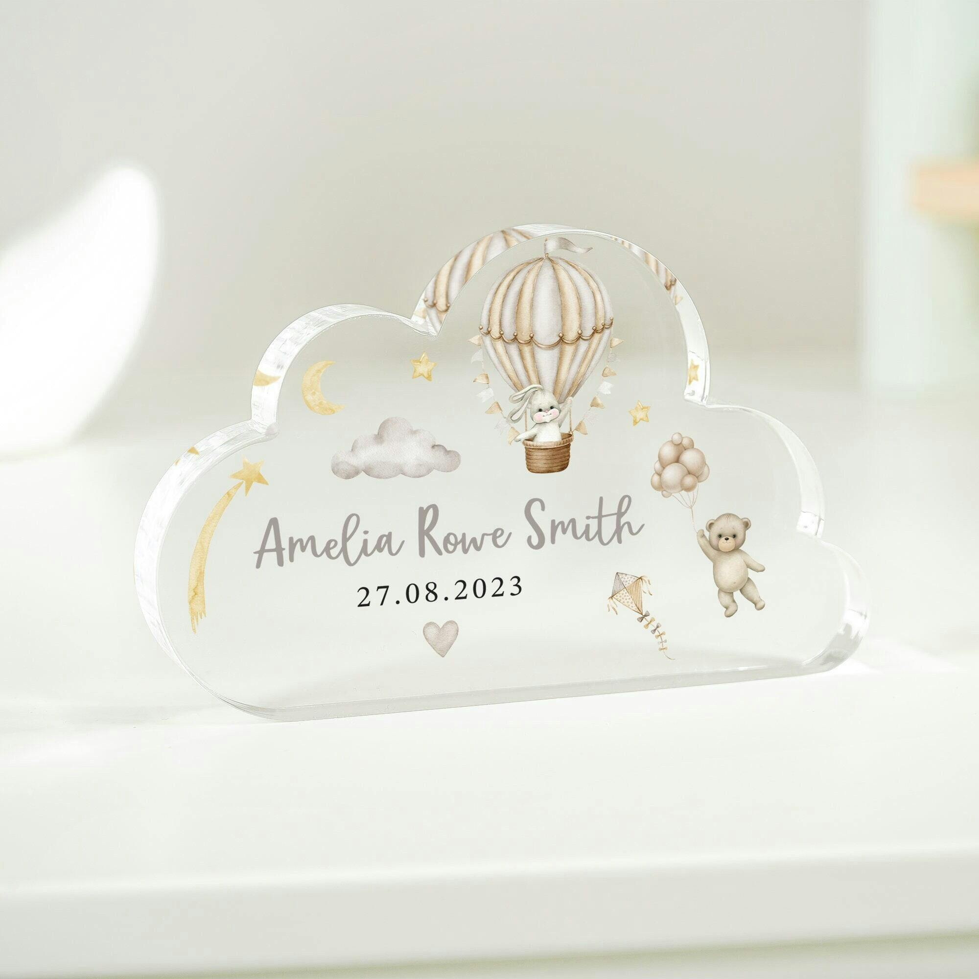 Personalised New Baby Plaque Congratulations Gift Hot Air Balloon Themed