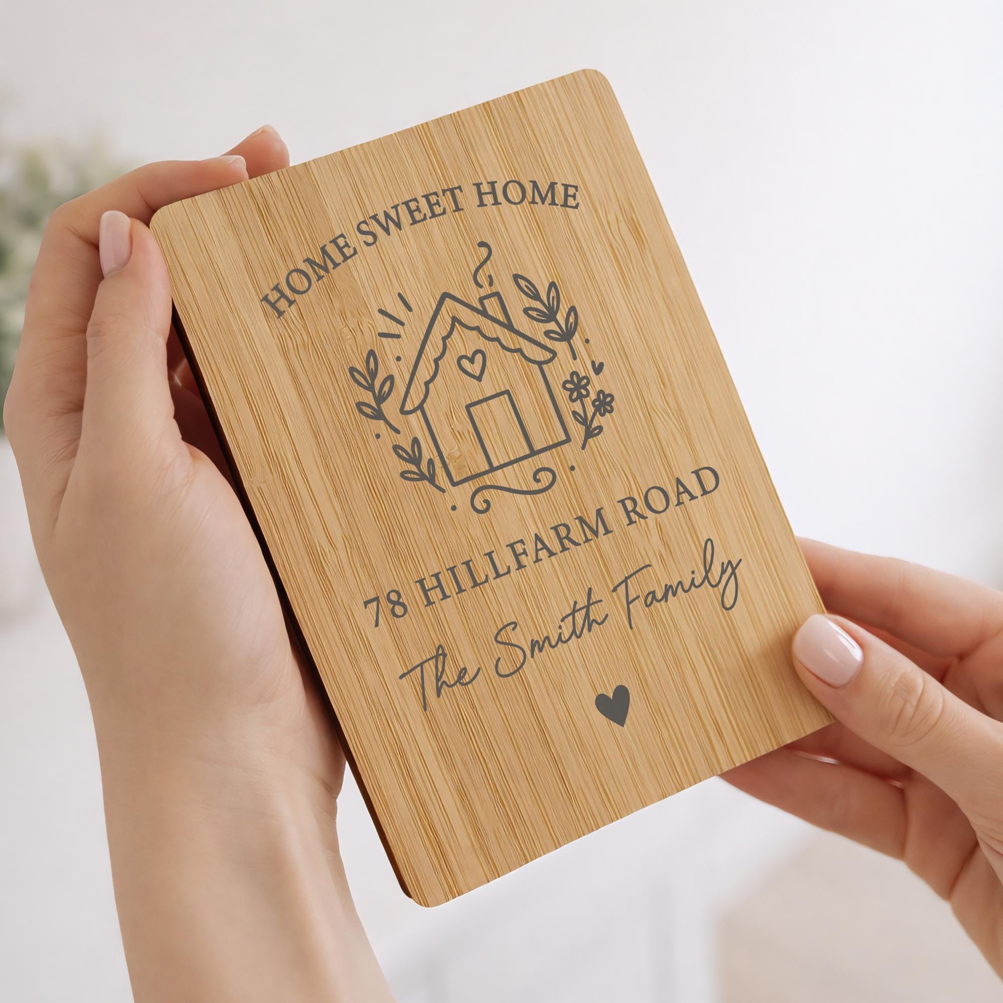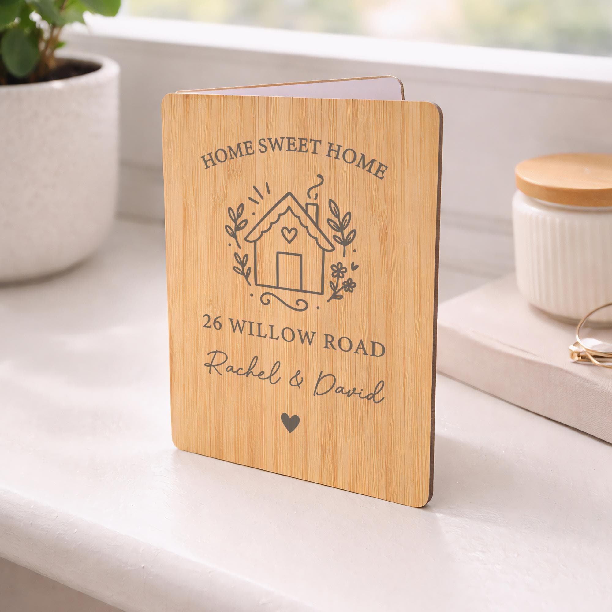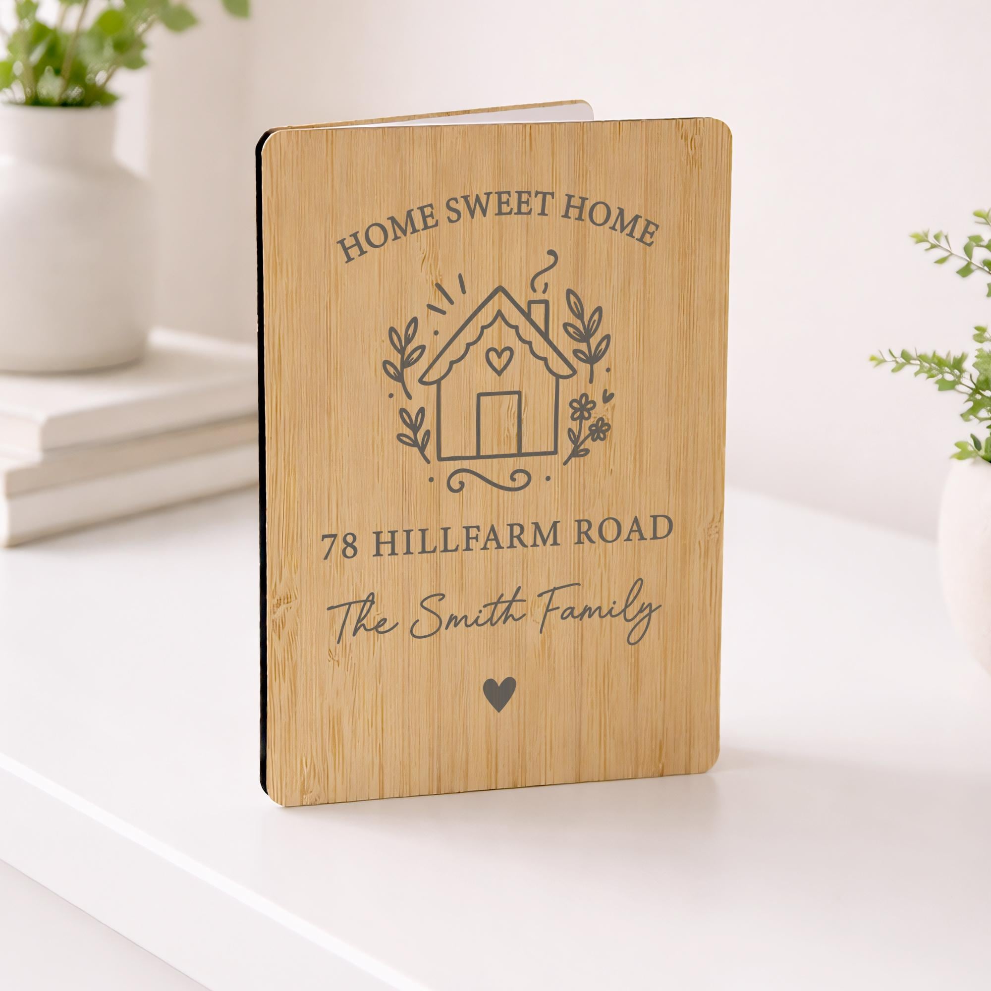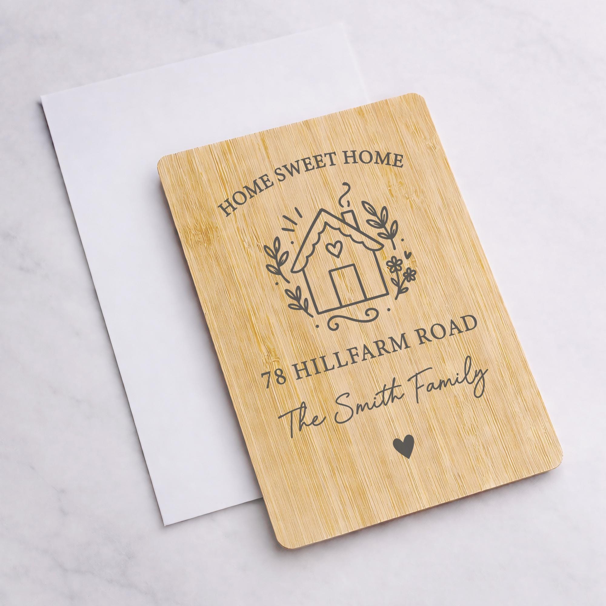 Personalised Home Sweet Home New House Keepsake Wooden Card