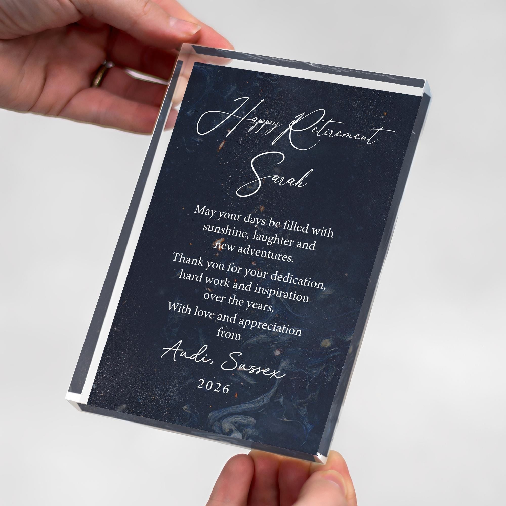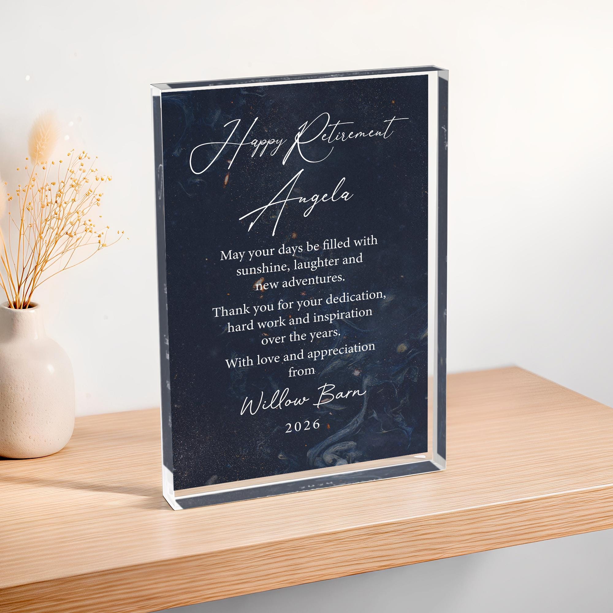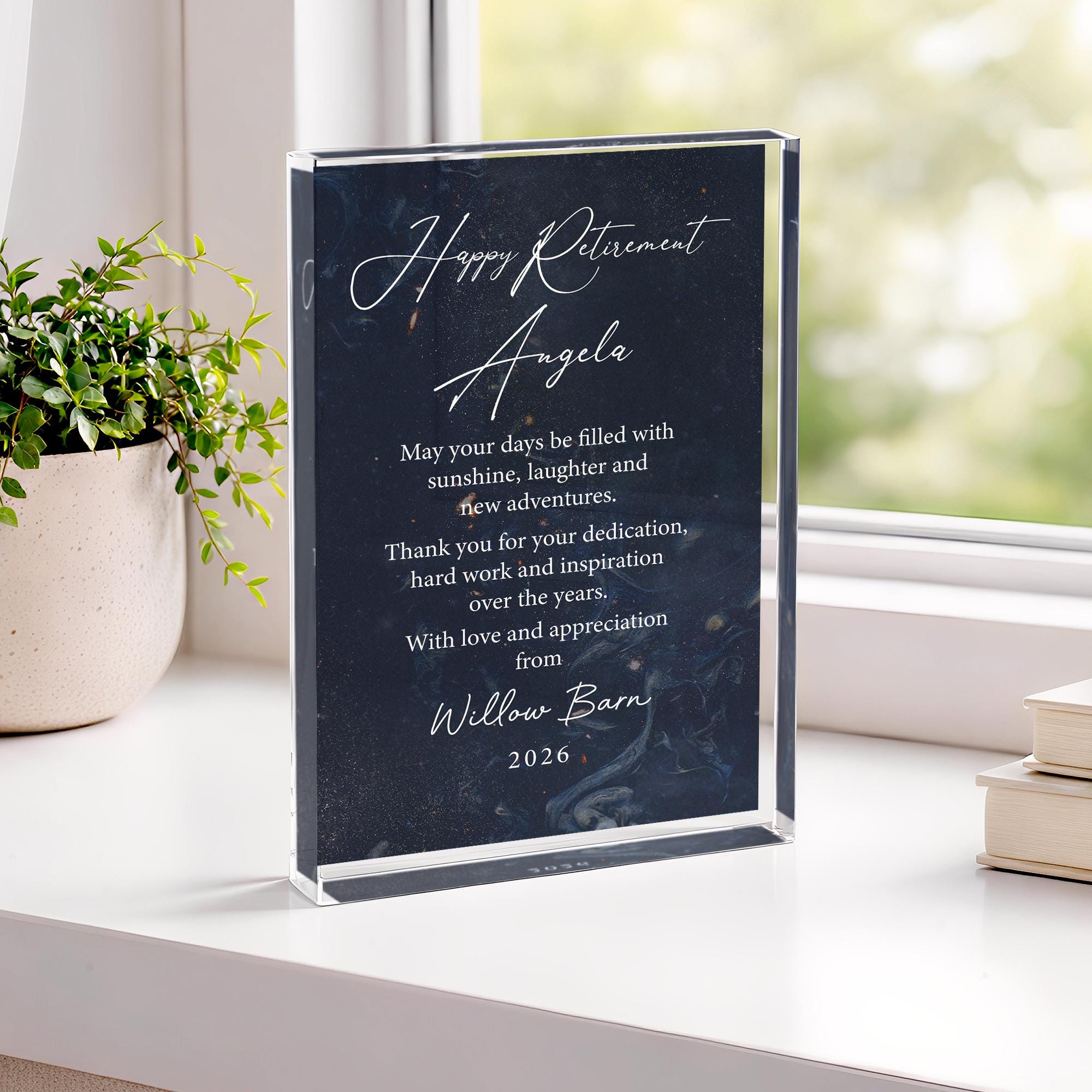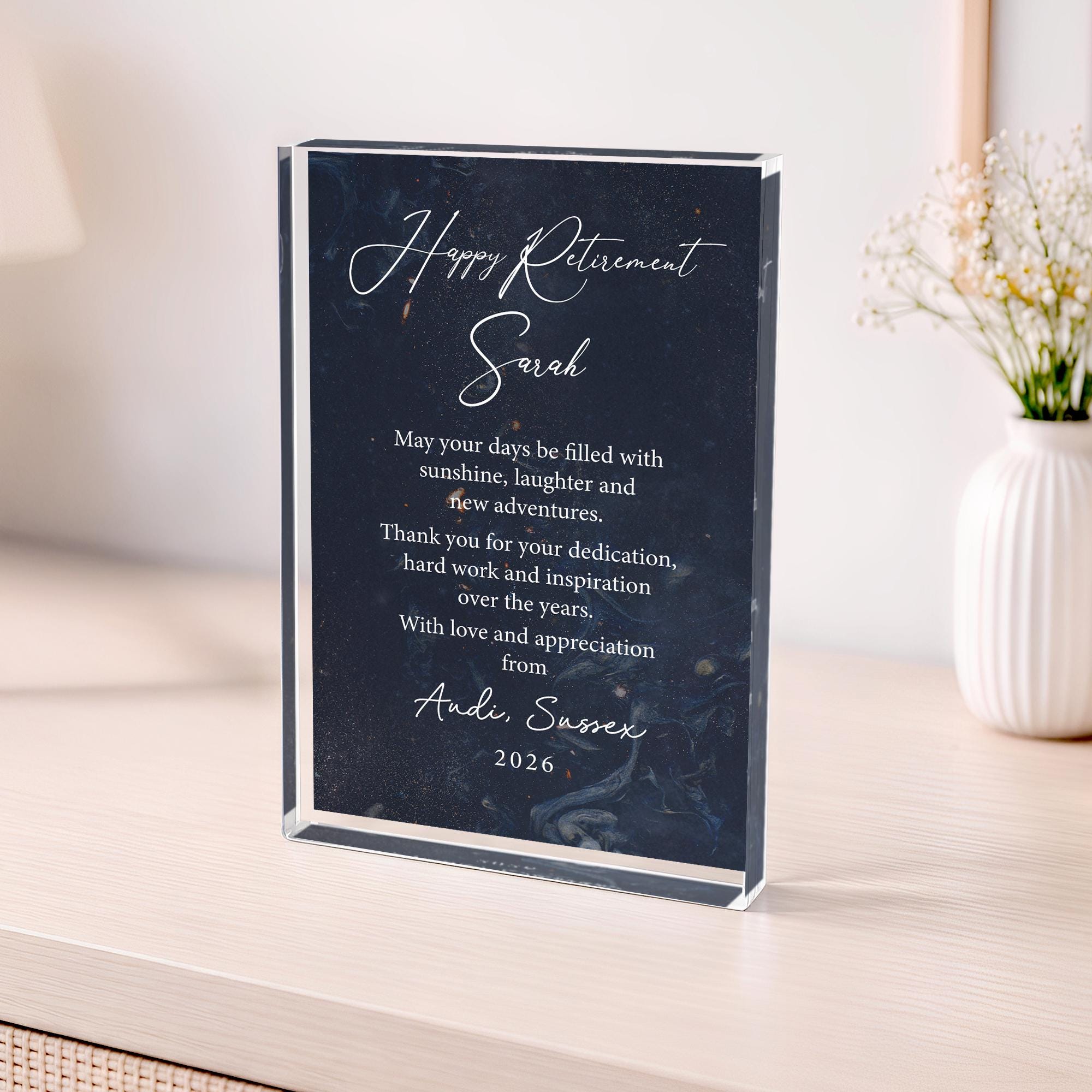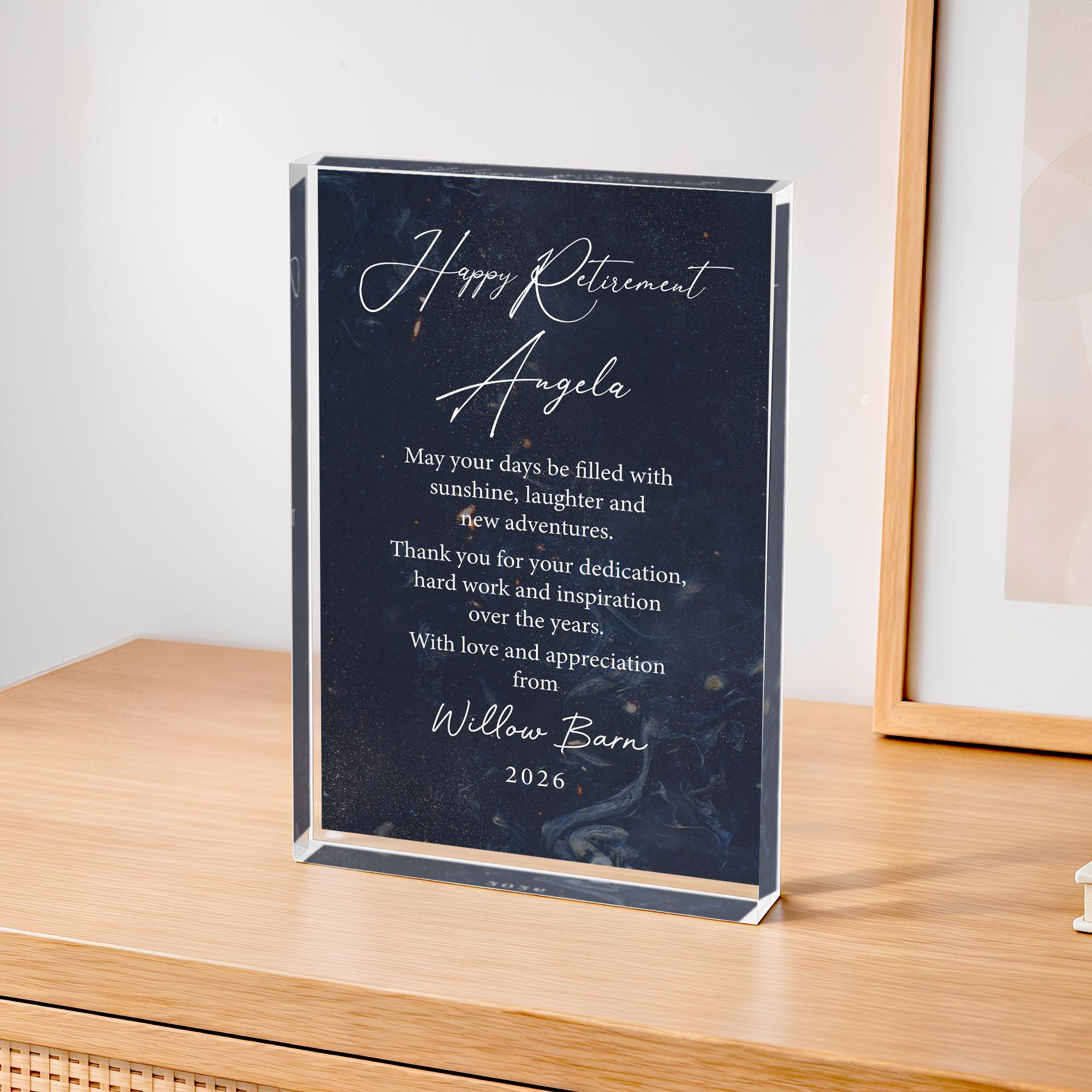 Personalised Retirement Gift Plaque for Coworker Colleague – Polished Acrylic Keepsake
