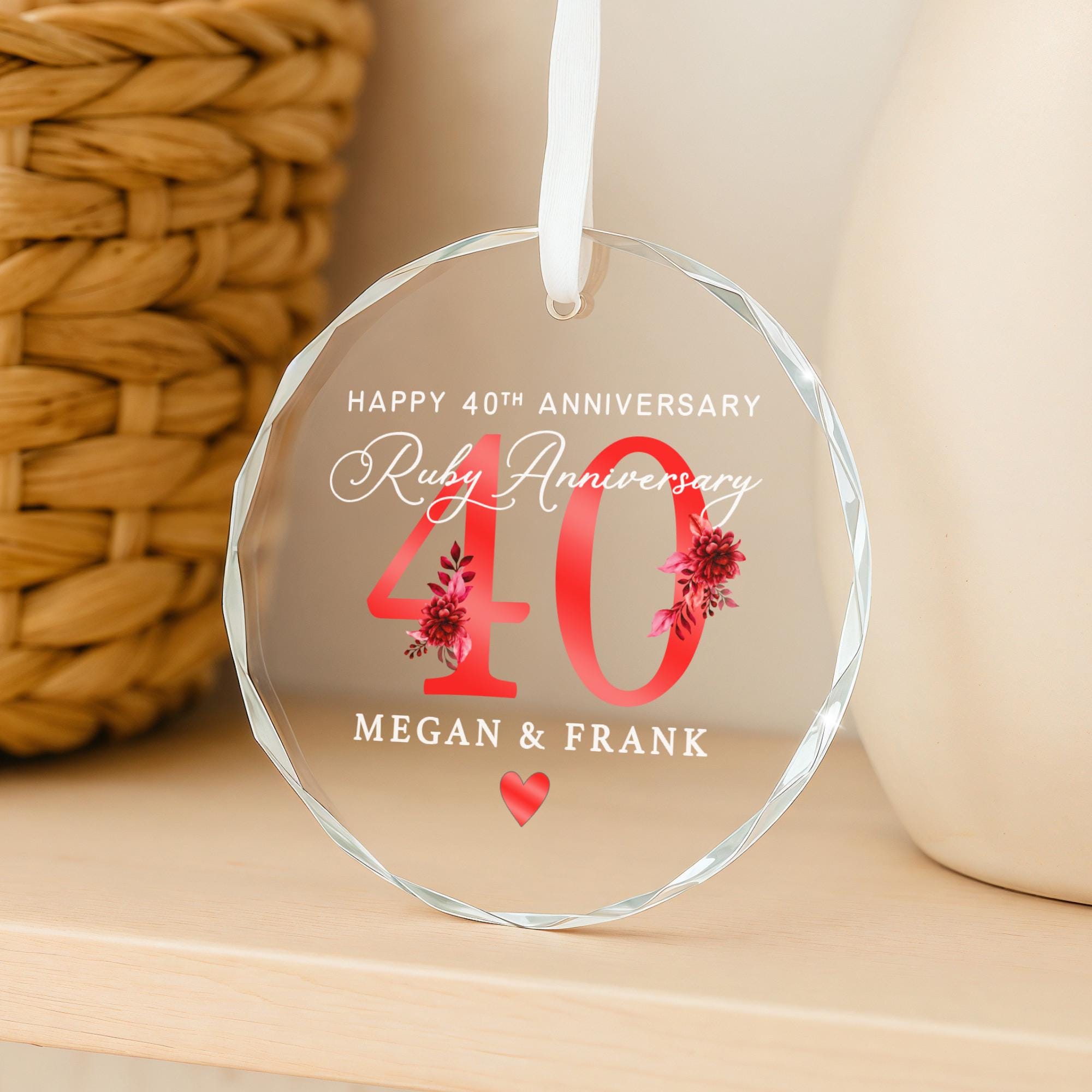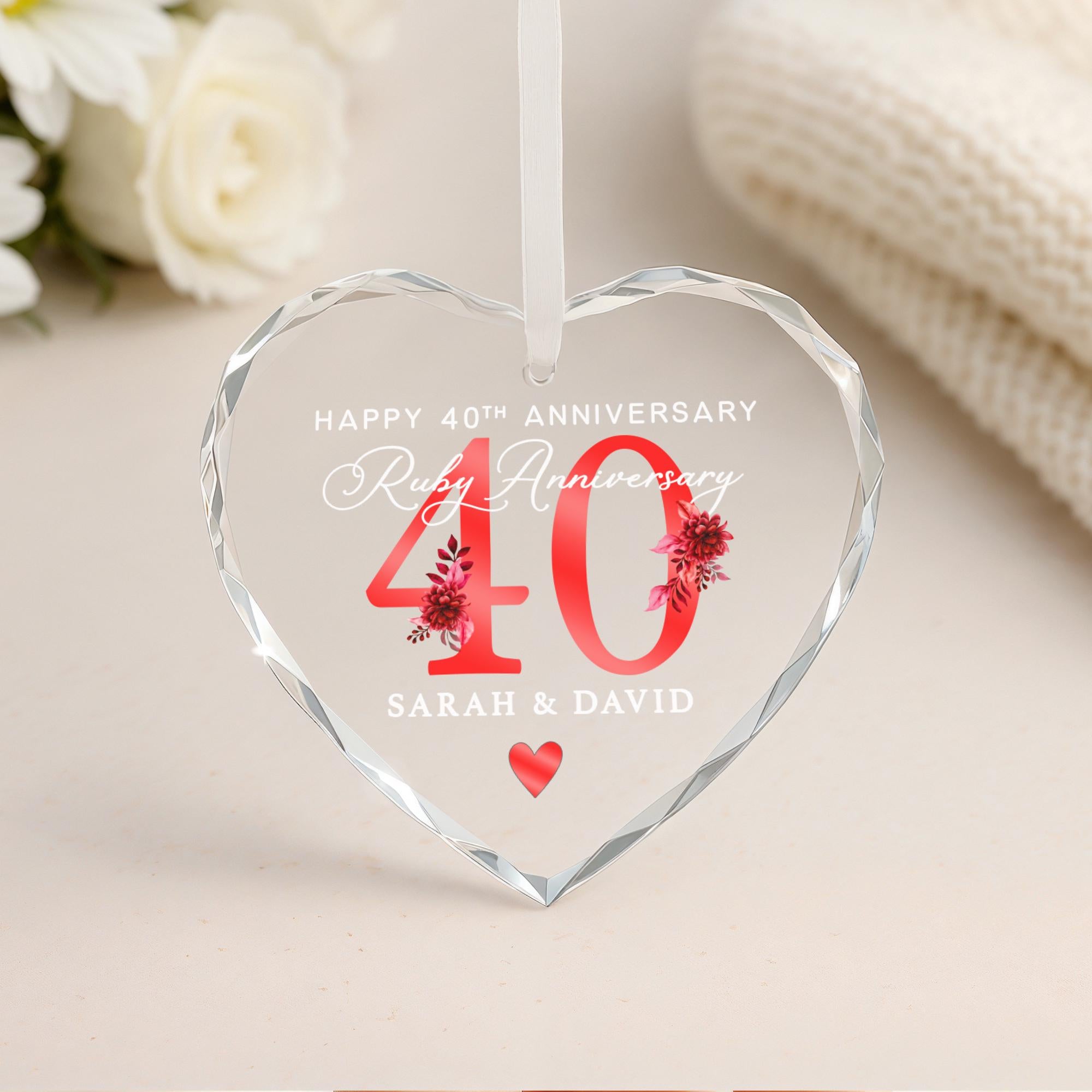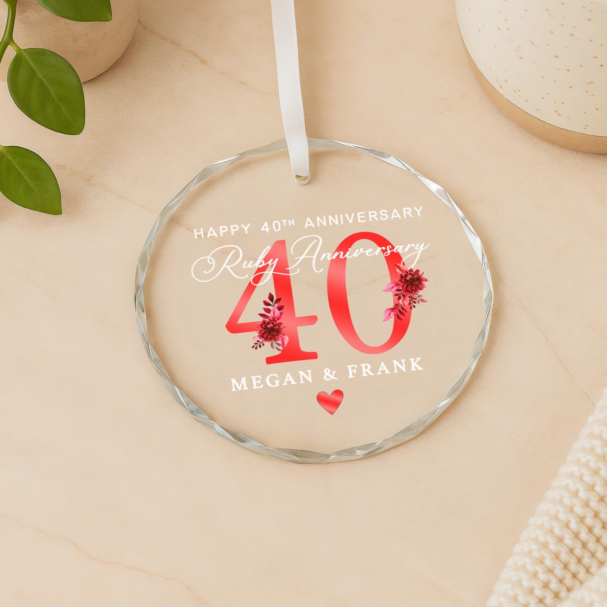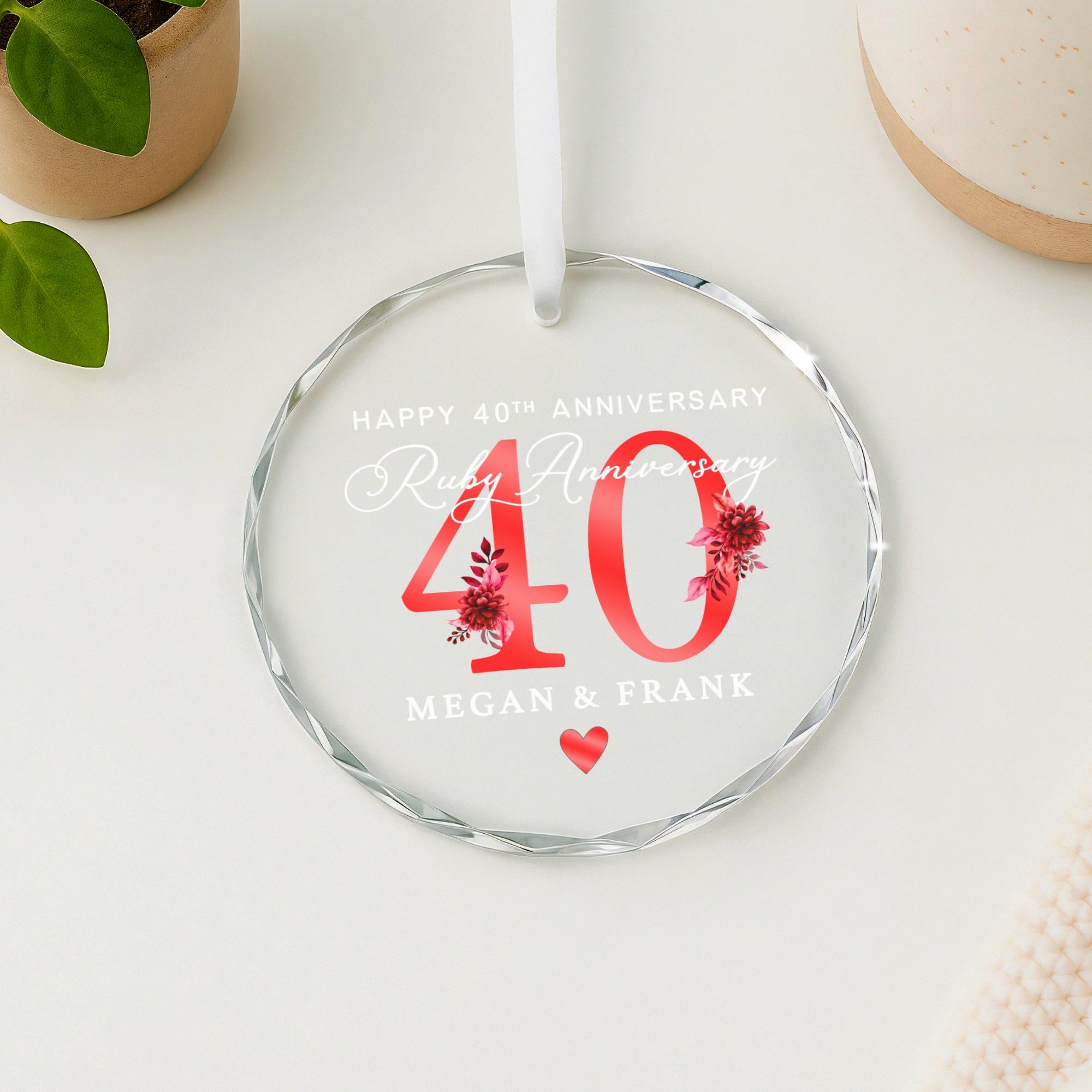 Personalised Ruby 40th Anniversary Glass Ornament Plaque Gift