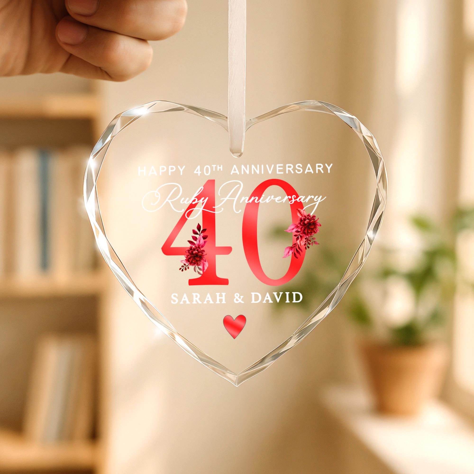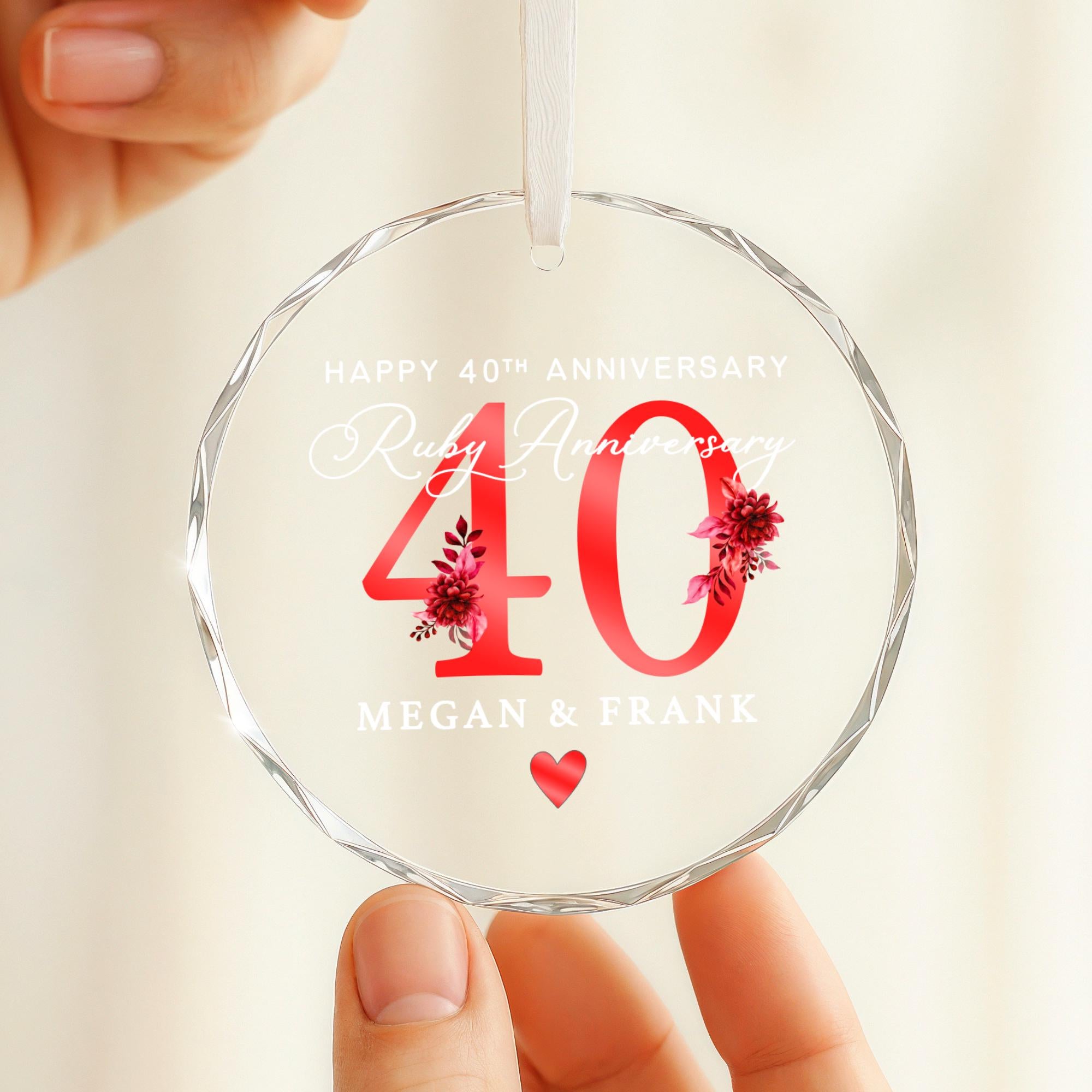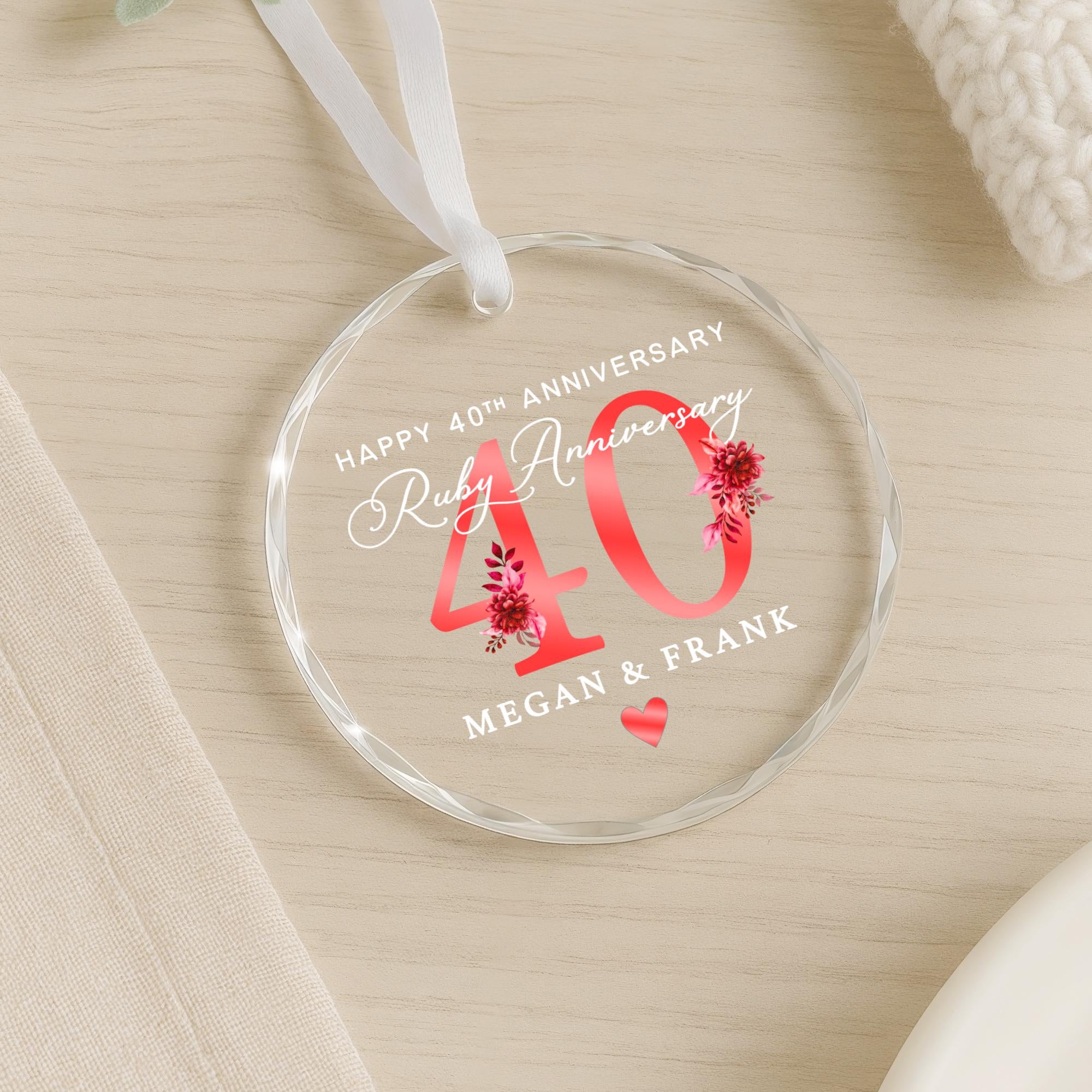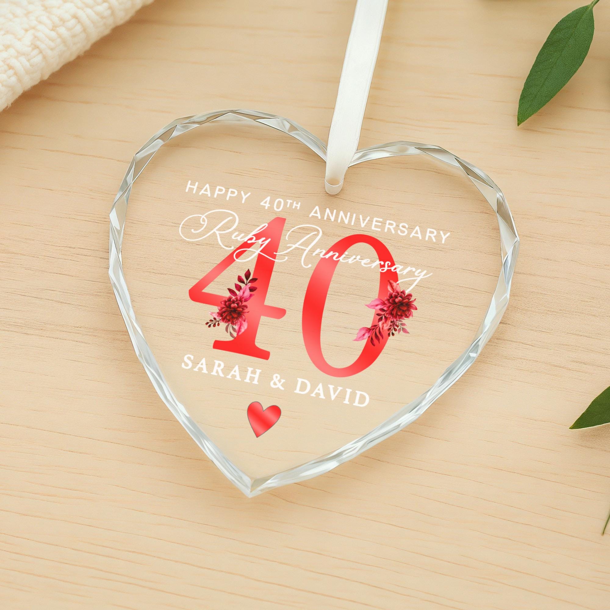 Personalised Ruby 40th Anniversary Glass Ornament Plaque Gift