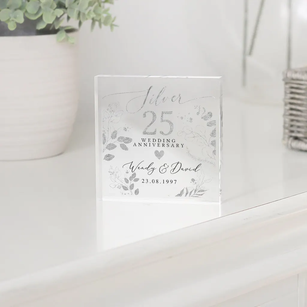 Beautiful acrylic crystal block personalised for that special milestone anniversary!