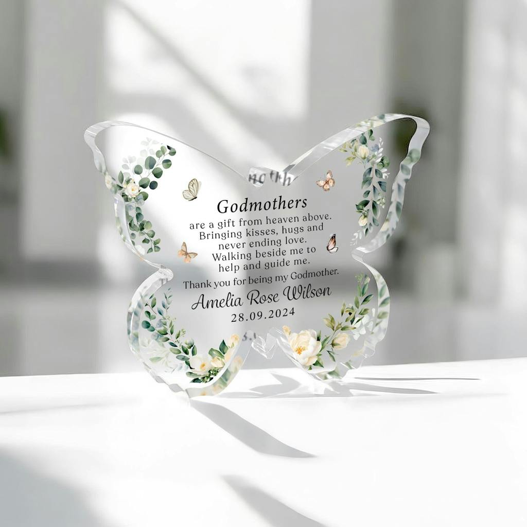 Personalised Butterfly Thank you Godmother Gift Plaque