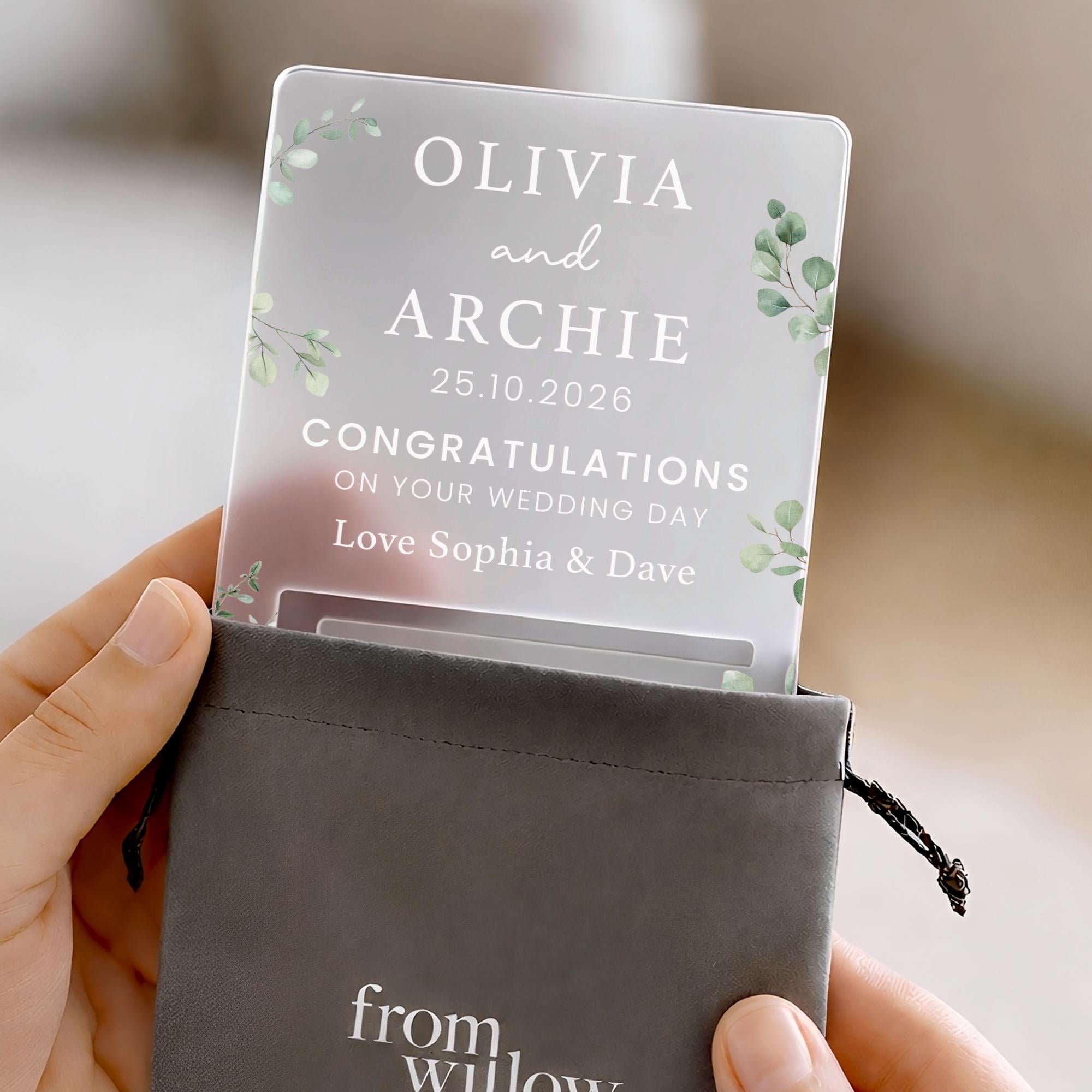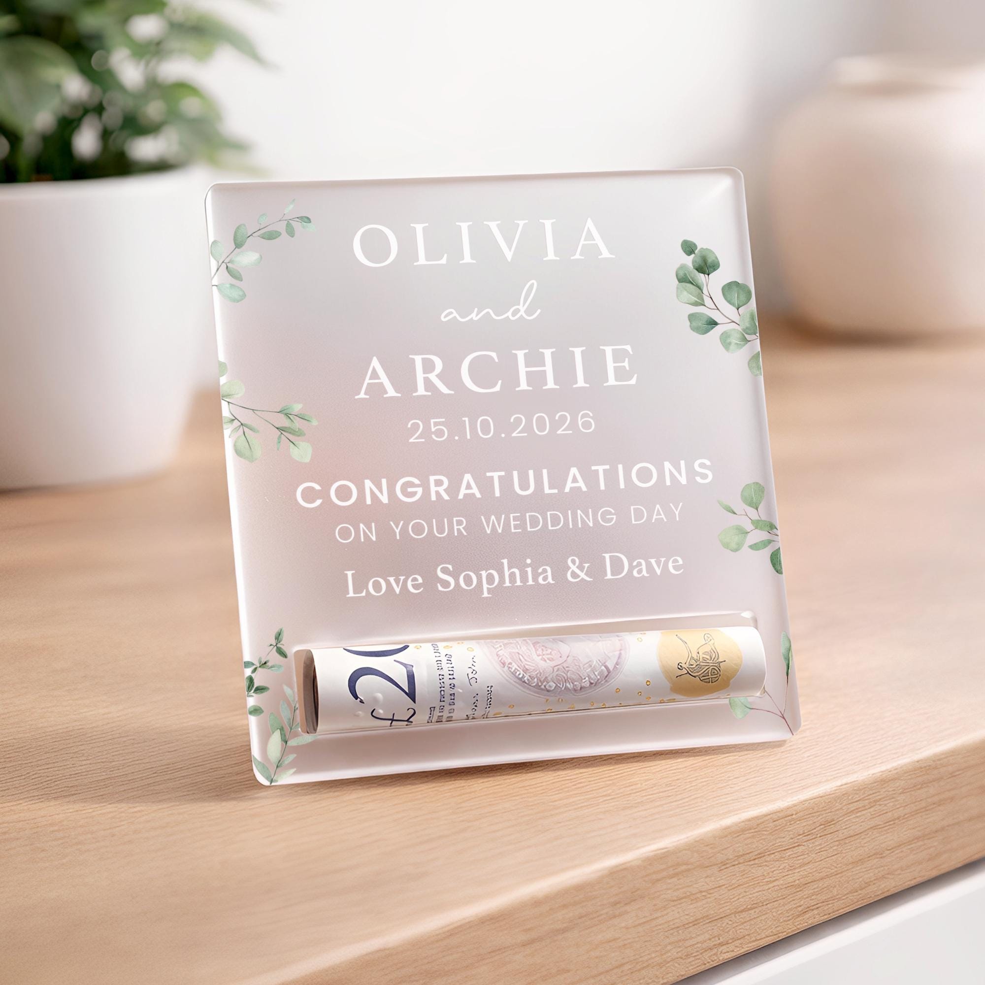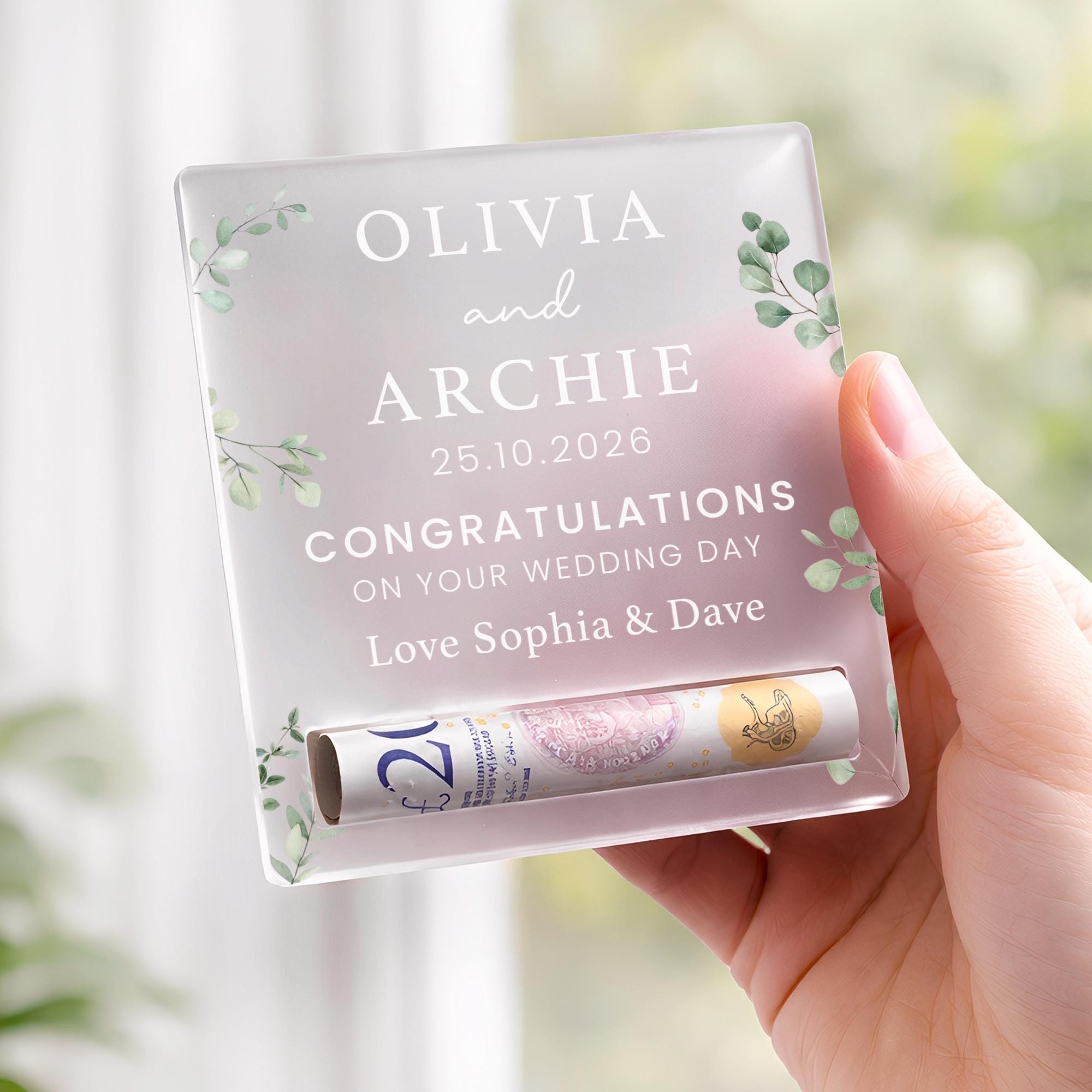 Give the gift of money in a way that feels thoughtful and special. This personalised money holder is designed to hold a rolled note, turning a simple cash gift into a meaningful keepsake. Made from frosted acrylic with a clean, modern finish, it’s perfect for birthdays, weddings, celebrations, and life milestones of all kinds. A beautiful alternative to a card or envelope, and a keepsake that looks just as good on display as it does on the day it’s gifted.