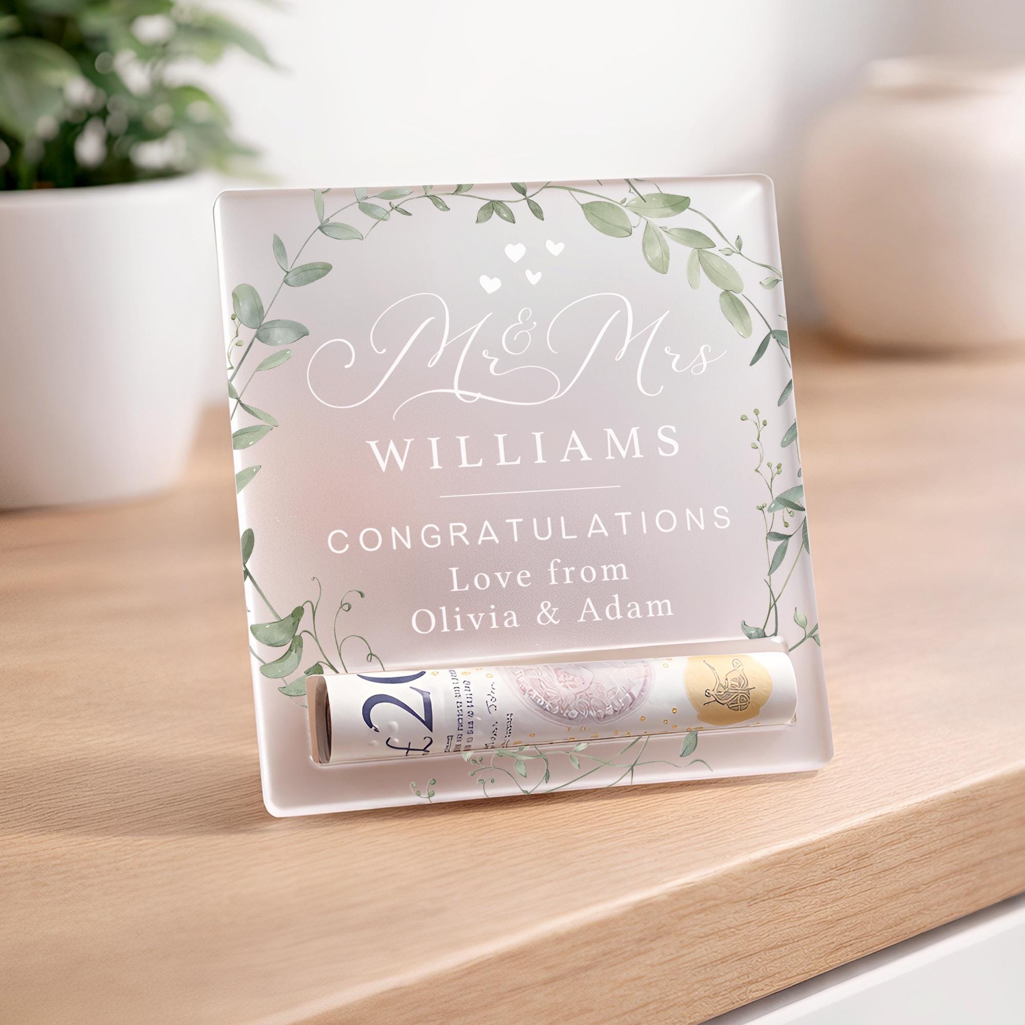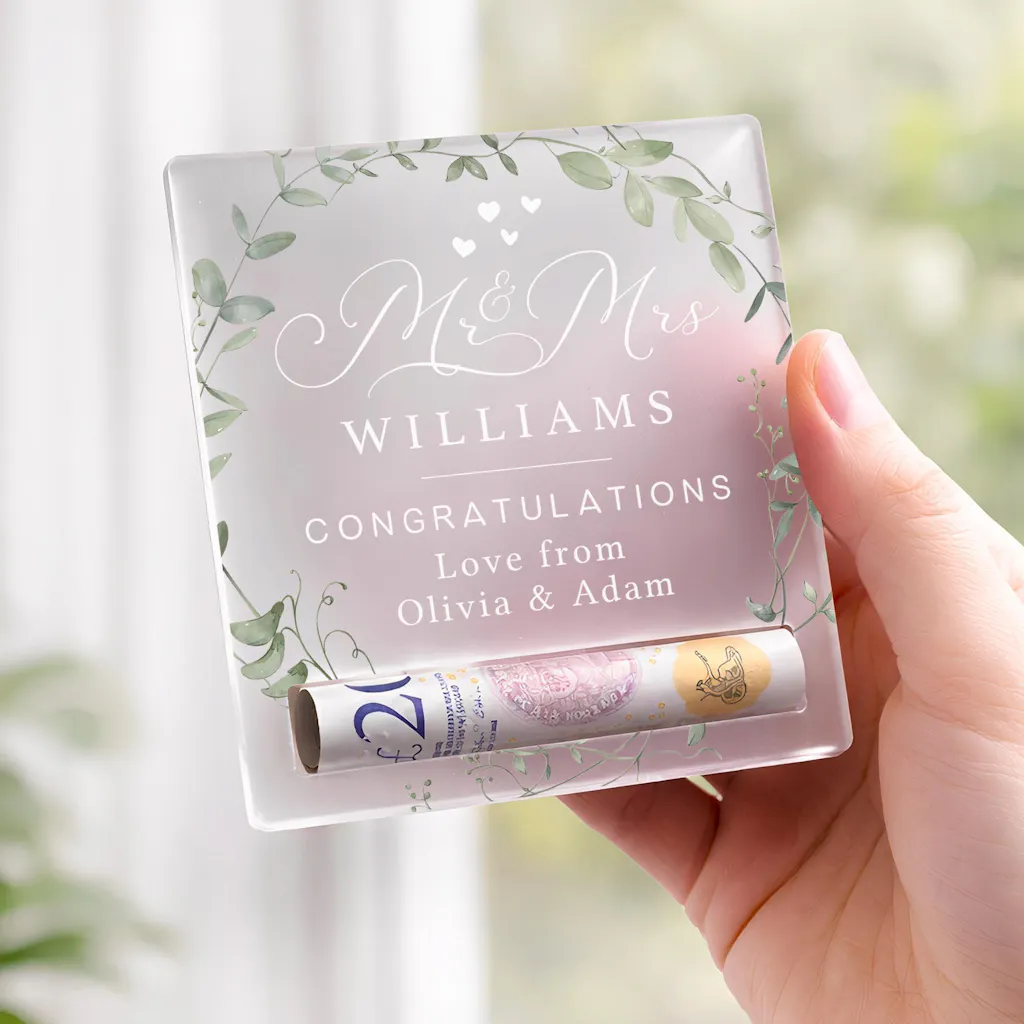 Give the gift of money in a way that feels thoughtful and special. This personalised money holder is designed to hold a rolled note, turning a simple cash gift into a meaningful keepsake. Made from frosted acrylic with a clean, modern finish, it’s perfect for birthdays, weddings, celebrations, and life milestones of all kinds. A beautiful alternative to a card or envelope, and a keepsake that looks just as good on display as it does on the day it’s gifted.