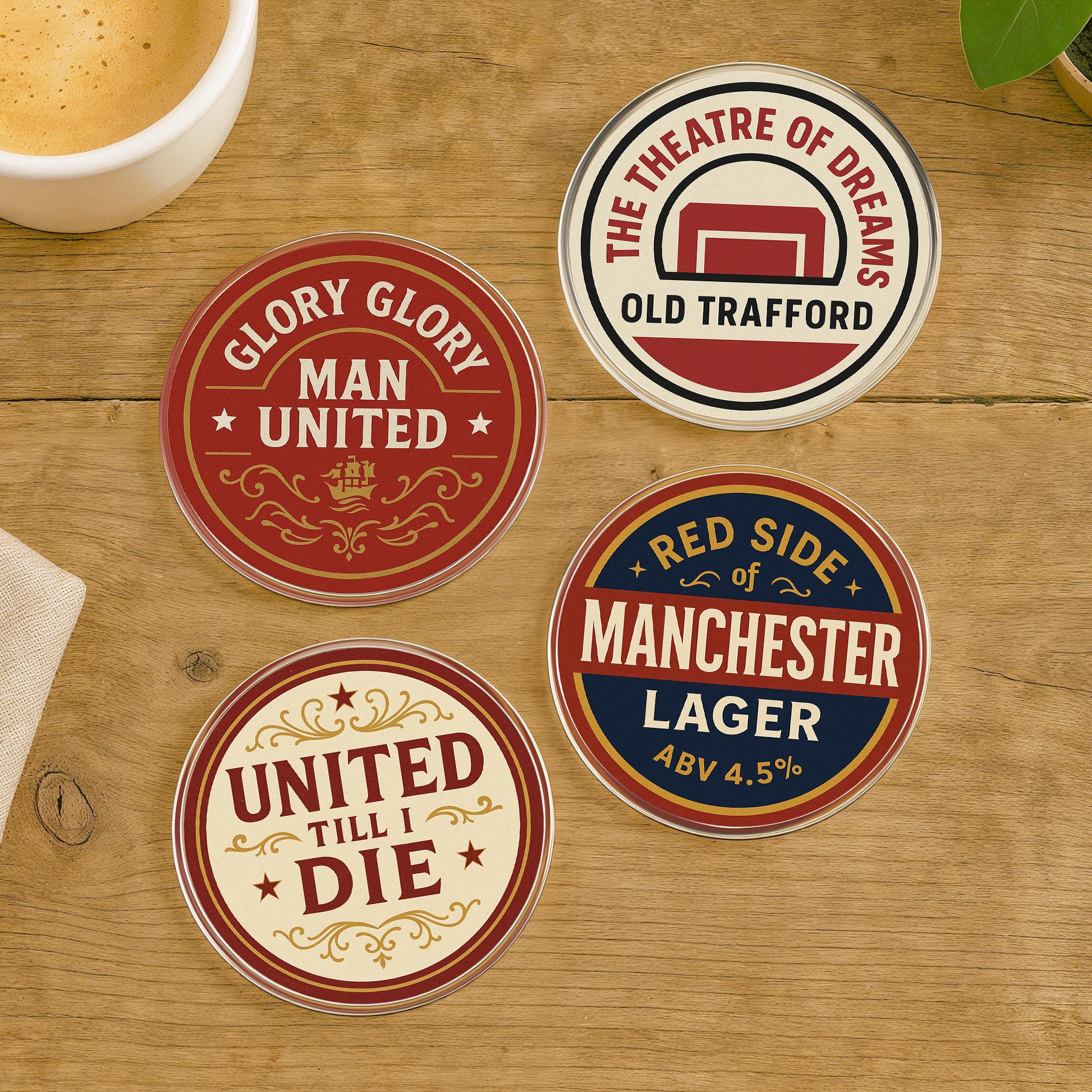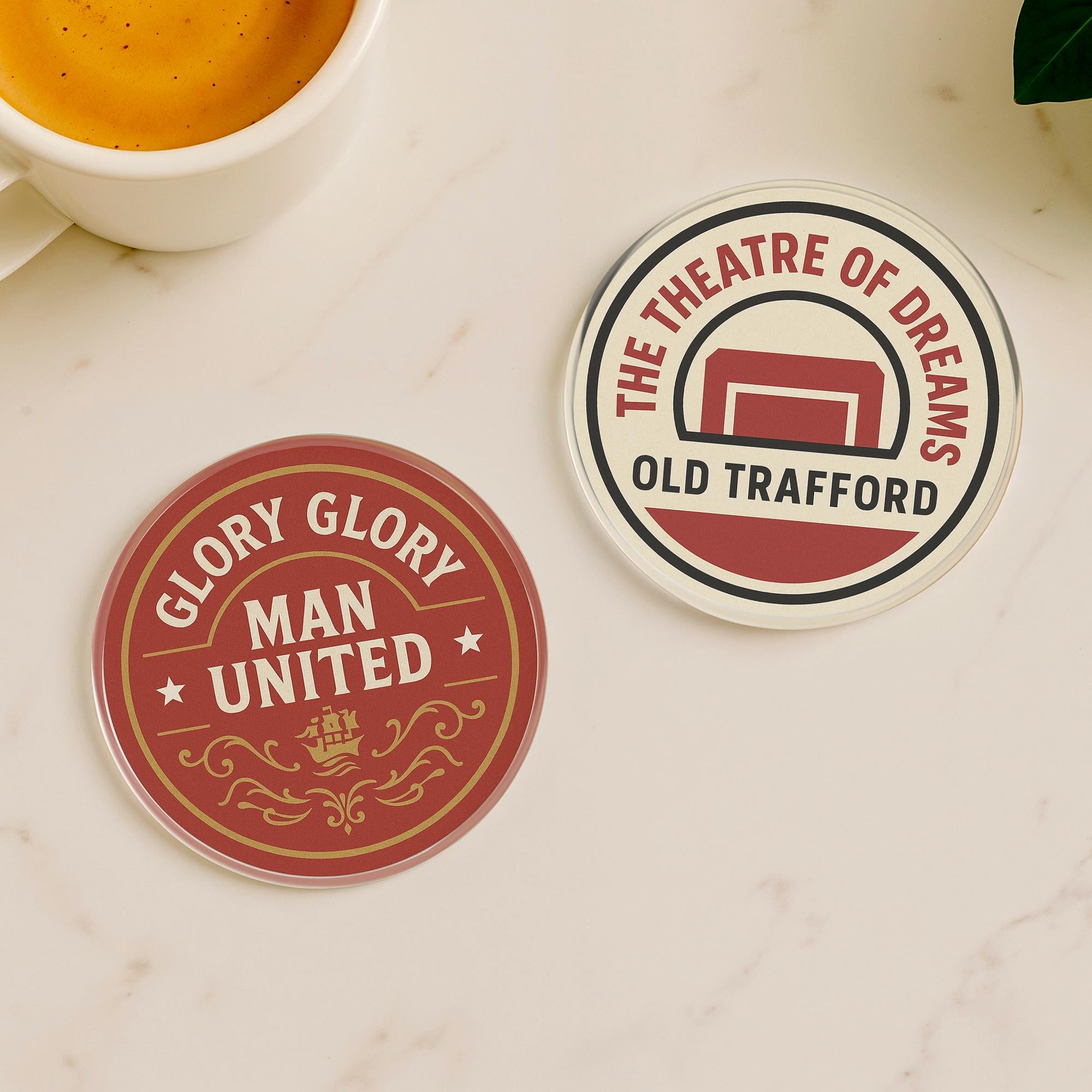 Set of 4 Man Utd FC Chants and Slogan Themed Clear Acrylic Coasters